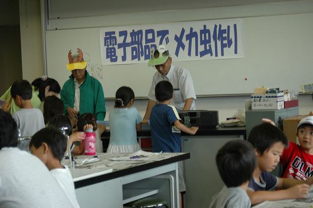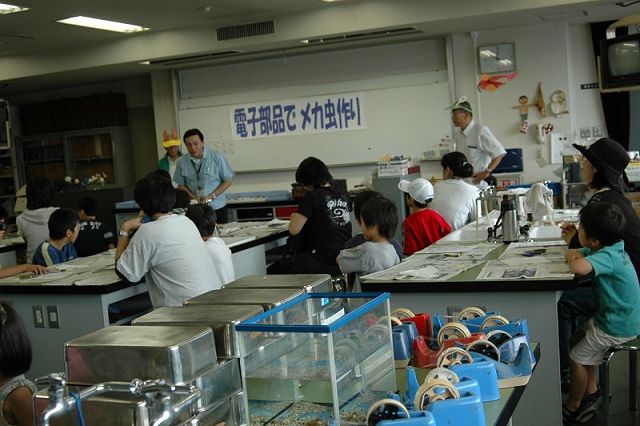 小学生低学年対象のメカ虫工作は、参加した子供の熱心さよりも同伴の母親の熱意が上回る様に感じました。