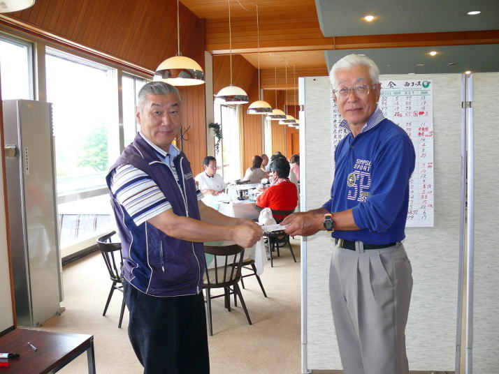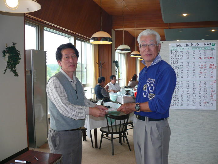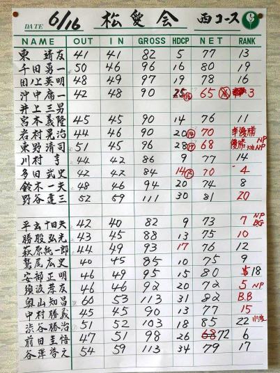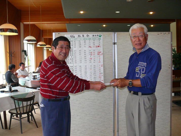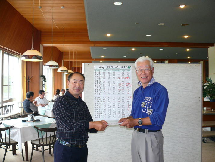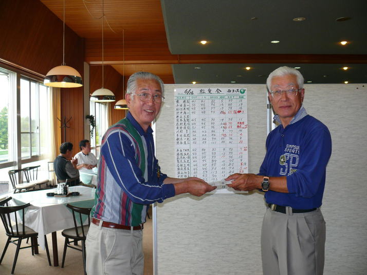 | 第1回の悩まされた強風とは対象的に、今回は微風、時折薄日の差す絶好のコンディションの下、参加者22名、6組が8時18分 IN/OUT2Wayで競技がスタートしました。 結果、Netアンダーパー4名と好成績が続出し、中でも東野会員が68で優勝の栄誉に輝き、70歳代の健在ぶりを見せつけてくれました。 尚、Net65の沖中会員は初参加の為、規約により3位に繰り下げとなっています。成績は以下の通りです。 |