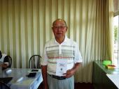 | 9月に入っても夏日が続いていたが、前日の雨もすっかり上がり朝から秋らしい快晴の下、28名の参加者がアウト、インに分かれ、8時42分スタートしました。 久々の好コンディションとあって傾斜のきつい難しいグリーンを克服して6名がアンダーパーと云う好成績の出た例会でした。 結果は、以下の通りです。 |