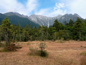 上高地から眺める穂高の峰々