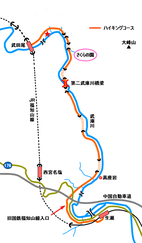 コース略図【生瀬〜武田尾廃線跡】 クリックすると鮮明な地図が現れます。 |