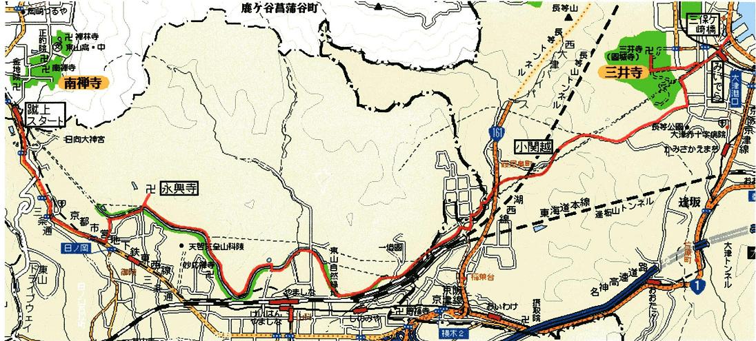 地下鉄蹴上駅 ⇒ 日ノ岡 ⇒ 永興寺 ⇒ 燈園 ⇒ 小関越(昼食)⇒ 三井寺 ⇒ │→→1.5km←←│→ 0.7km ←│→→→ 5.5km ←←←│→ 1.8km ←│→→ ⇒ 三保が崎橋 ⇒ 京阪三井寺駅 解散 →0.8km←│→→ 0.2km ←←│ |
