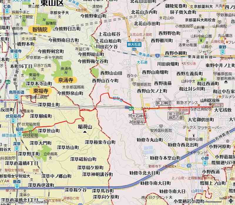 JR稲荷駅⇒稲荷大社⇒稲荷山四ツ辻⇒極楽寺⇒大石神社 (昼食)⇒岩屋寺⇒山科神社 |――――1.9k――――|――――2.3k―――――|―――0.2K――|――――― ⇒折上神社⇒坂上田村麻呂の墓⇒地下鉄椥辻駅(解散) ――1.1k―|――0.6k――|―――0.9k―――| |