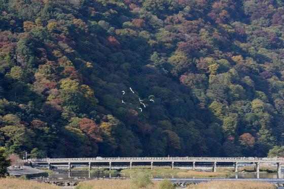☆JR桂川駅から久世橋まで一般道を、先は歩行者&自転車専用のサイクリングロードを嵐山公園まで車 を気にせずに、 秋を感じながら歩きます。(アップダウンの無い快適なコースです) ☆サイクリングロ−ド : 自然とのふれあいによる心豊かな人間性の回復や健康づくりに役立て、自転車交通の安全性を確保するため整備されたものです。 嵐山・渡月橋右岸〜木津町・泉大橋左岸まで総延長45qの自転車・歩行者専用道路です。今回は、久世橋〜渡月橋までの9qを歩きます。 ☆松尾大社 : (洛西鎮護総氏神・日本第一醸造神) 日本第一の酒造神として仰がれています。大宝元年(701)に造営され、 現在の本殿は天文十一年(1542)に大修理を行ったもので、重要文化財に指定されています。 ☆渡月橋 :京都随一の観光名所 平安初期に法輪寺中興の祖、道昌僧正が架けた「法輪寺橋」が最初といわれ、 後に亀山上皇が橋の上を月が渡る様子を見て「渡月橋」と名付けたそうです。 |