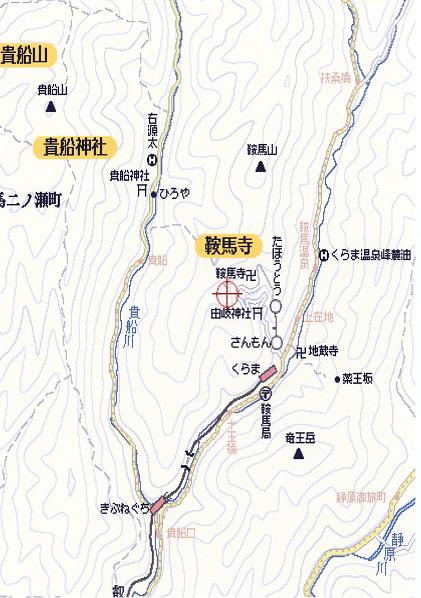 《 由 岐 神 社 》 平安京遷都のころ北方鎮護、鞍馬一帯の 産土神として建造され、大巳貴神(別称大国主命)・ 少彦名神などを祭る。豊臣秀頼が再建した拝殿(重文 は中央に通路がある割拝殿形式、10月22日の「鞍馬 の火祭り」は京都三大奇祭の一つで有名 《 鞍 馬 寺 》 鞍馬弘教総本山。770年(宝亀1)鑑真の高 弟鑑禎が毘沙門天を本尊として奉安したのが起こり。 平安時代は京都の北方守護の寺として信仰を集めた 本殿金堂、多宝塔などは近年再建され、鉄筋造り。 国宝の毘沙門天像などの宝物収蔵庫がある。 本殿裏から奥の院への山道に牛若丸の遺跡がある。 《 木 の 根 道》 鞍馬寺の本殿〜貴船側にある西門までの 老杉の木の根が露出した山道で、この奇観は神秘的 で今にも天狗が出てきそうなハイキングコース。 《 貴 船 神 社 》 奈良時代以前の創建と伝える古社、水の神 「たかおかみの神」を祀り歴朝はじめ現在も 農漁業・醸造業者らの信仰が厚い。 社殿は1055年に上流から移されたという。 旧社殿後に貴船神社奥宮がある。 水清く老杉繁る京の避暑地である。 |