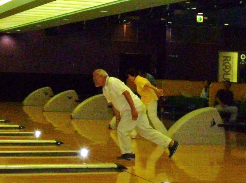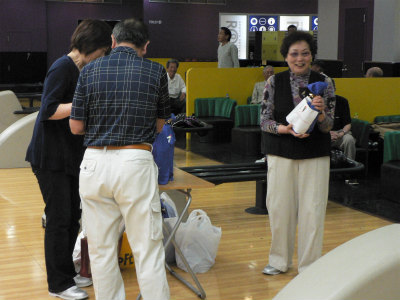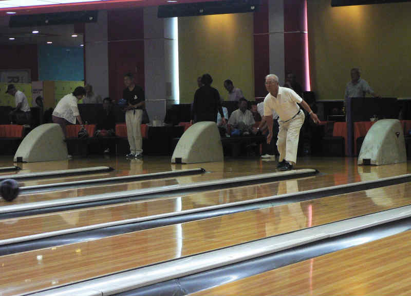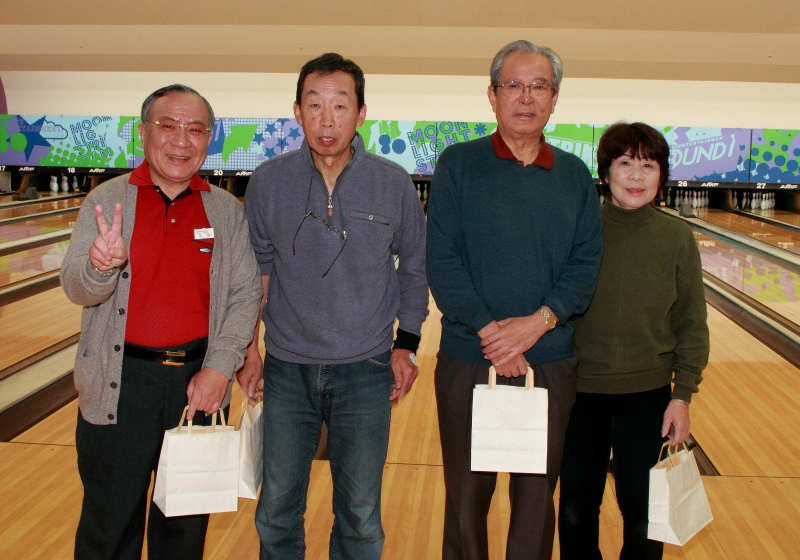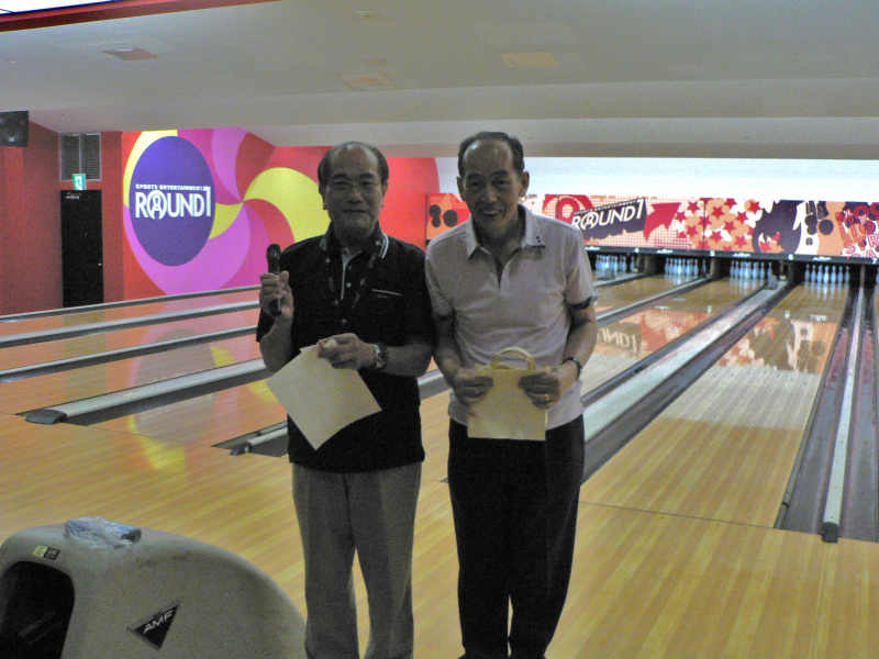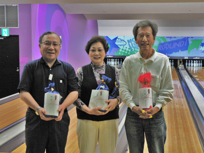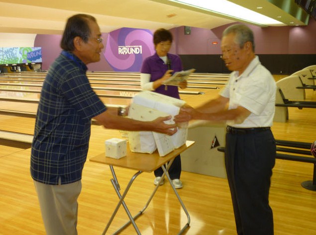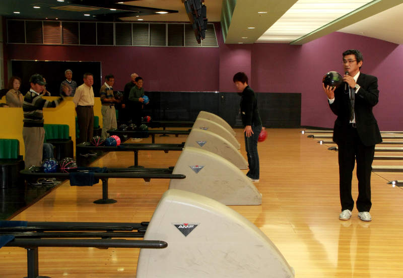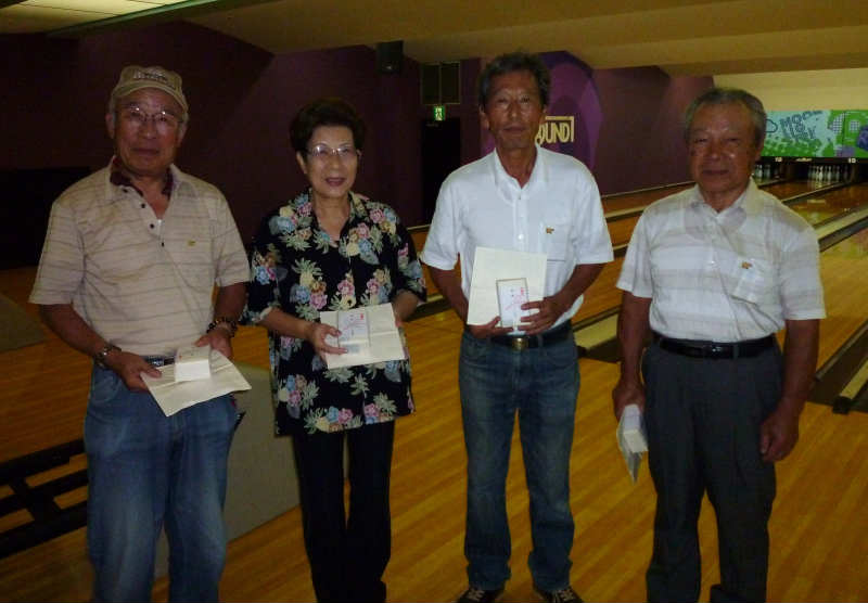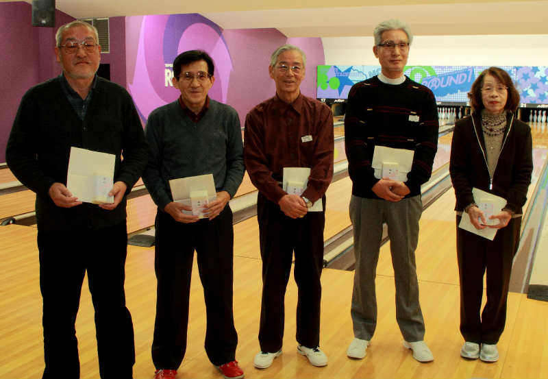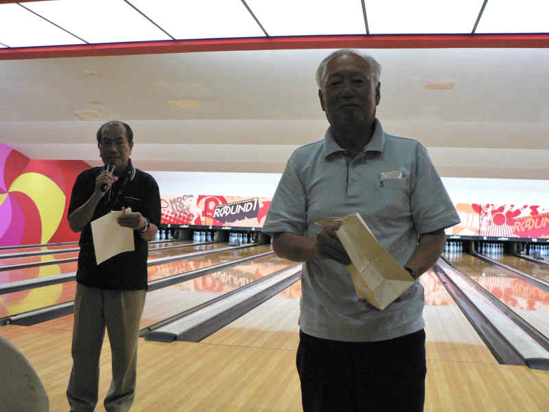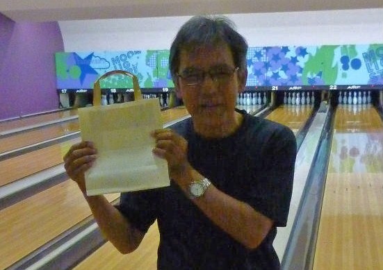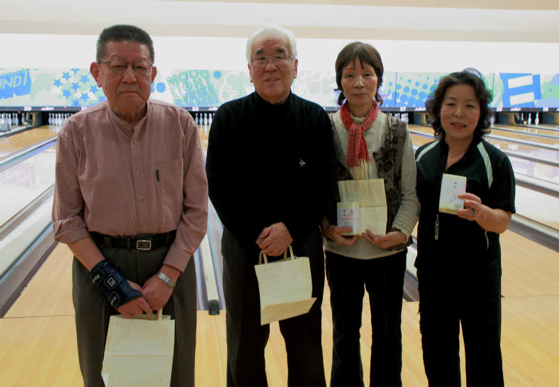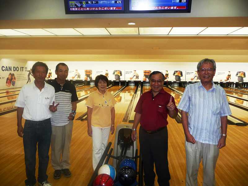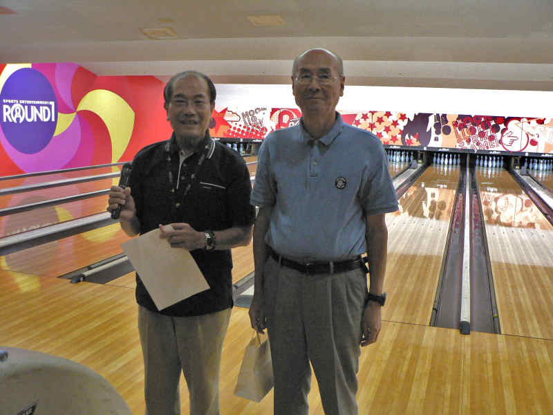 3位は幸田宏之助さん(右京区)でした。おめでとうございました。 また、当月から暗闇の中で投げる「ムーンライト」ゲームを採用し、鎌田苑江さん (長岡京西)が唯一その際の投球で高得点をマークし賞品をゲットされました。 ゲームの方では、横山政一さん(大山崎)が、過去に平居さん(伏見中)が 出された237点に惜しくも及びませんでしたが235点のHGを得点するなど、全ゲームに 高得点をマークされ、3ゲームトータルでは過去にない600点超の記録を樹立されました。 このようにボウリング同好会では若人にも負けないくらいの記録が次々生まれております。 皆さんも是非、記録にチャレンジしてみてください。 次回の例会は10月20日(第3木曜日)に予定しております。多くの方のご参加を お待ちしております。 |
