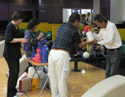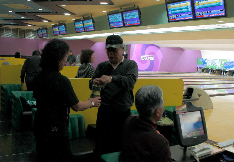 第16回ボウリング同好会定例会を6月16日(木)に開催しました。 また、今回の定例会から、次の3つの新しい試みを導入しました。 1)誕生月の会員にささやかなお祝いをする事になり、当月は3人の該当者に 紅白のお饅頭が会長から手渡されました。 2)今迄、投球レーン(組合せ)は会長が決めていましたが、2ゲーム終了時点で 各人が「くじ」を引いて投球レーン(組合せ)を決める事にしました。 3)先月迄は偶数月をアメリカン方式(投球毎に2レーンを入れ換わるで方式) としておりましたが、ゲーム進行の効率化を図る為に当月から全月に アメリカン方式を採用する事に致しました。 会員に関しましては今月より、向日市の土橋裕士さんが新会員として加入されました。 尚、ボウリング場の「ラウンド1」様より新品のボウリングピンを寄贈頂きました。 会員の皆さんのお名前をピンに記入して、同好会のマスコットとして、 例会等開催時に会場に設置したいと考えております。 次回開催日は7月21日(木曜日)です。多くの方のご参加をお待ちしております |
