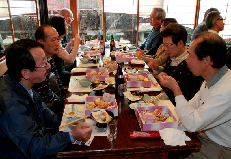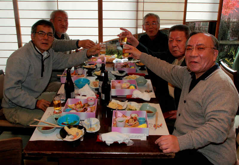 ので今後ともよろしくお願いいたします」と、先ず関口同好会々長からお礼を申し上げます。 さて、当月は高橋さん(上京区)、大久保さん(右京区)、夜久さん(南区)、鎌田苑江さん(長岡京西)の4人が お誕生月で、例月の通りお祝いの紅白のお饅頭プレゼントの後、揃ってカメラに収まって頂きました。 ゲームの方では、当月は1位の山口さん(西京東)、2位の竹村さん(伏見中)、3位の佐貫さん(山科区)が 3ゲーム500点超えの好成績を収められました。特に山口さんは前月に続いて2ゲーム200点UPの 驚異的な成績をあげられました。しかし、当日のHGは竹村さんの223点でした。この結果から、会員の 実力が相当にレベルUPしてきたことを裏付けているように思いました。 また、当月は「ムーンライト」ゲームが復活し、3人の方が暗闇の中、ストライクを取られた方と同伴の メンバーとともに記念写真に収まって頂きました。下の写真で、レイを掛けられた写真中央の方が ムーンライトゲームの覇者です。覇者にはゴルフ場からのささやかな記念品があります。 来月(4月19日 第3木曜日)は第5回競技会を実施します。また、競技会終了後に場所を河原町 三条下る「アサヒビヤレストラン」に移して表彰式、そして年次総会・食事会を予定しております。 多数のご参加をお待ちしております。 |