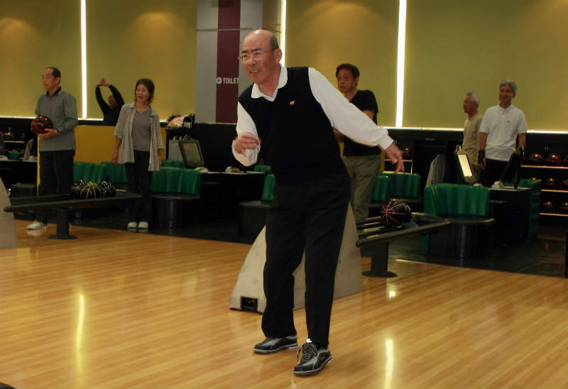 右京区の永田博志さんが先月より新しく会員になられました。ひと月遅れましたがご紹介します。 ゲームの方では例月トップグループ常連の遠藤さんがスクラッチTOTAL585点で断トツの1位、 2位には490点で久々に平居さんが入り、3位は入会して未だ間がない村井さんが ご健闘されて475点で入賞されました。また、当月のハイゲームは遠藤さんの218点でした。 実力をお持ちの方が新しく入会され、今後益々の熱戦が期待されます。 また、記者のように健康のために参加しているという人もあり、熱戦の中にも和やかムードも有りで 毎月、和気あいあいの中でもゲームを楽しんでおります。 さて、当月の掲載写真には斜め前方からと、後方から、夫々3人をランダムに選んで 投球フォームを撮ってみました。皆さん個性豊かで、毎月、撮っていて面白いです。 尚、掲載写真お気に入りの方には差し上げますので幹事までお申し出ください。 最後に、次回の例会10月18日(第3木曜日)です。 多くの方のご参加をお待ちしております。 |