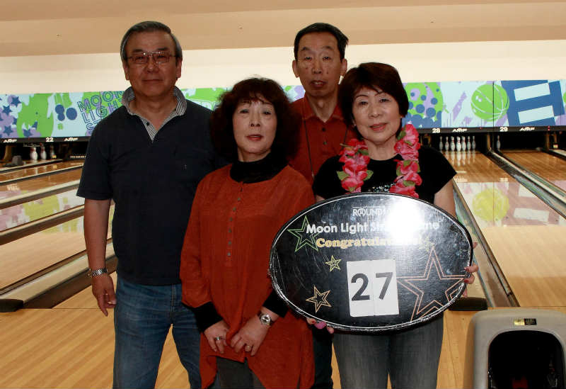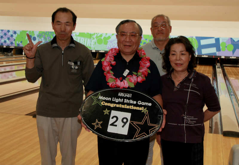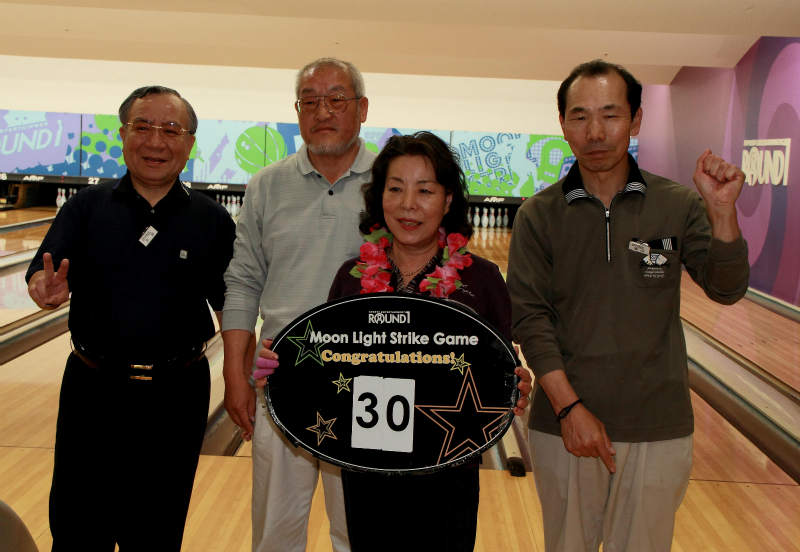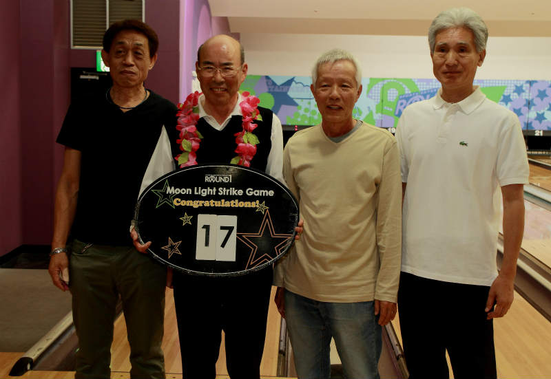 去る、5月17日(木)に当月の例会を実施しました。 当月は今田幹事の進行で例会がスタート致しました。冒頭に例月の通り、当月お誕生日の方々に お祝い品(紅白のお饅頭)が手渡されました。当月お誕生日は、関口さん(南区)、森岡さん(中京区)、 永田(向日市)の3人が対象で、揃ってカメラに収まって頂きました。 ゲームの方では、成績上位には当月もほぼ常連組が名を連ねました。 1位には遠藤さん(向日市)、2位に松本さん(左京区)3位には佐貫さん(山科区)と山中さん(伏見西)が 同点で入賞されました。 当月のハイゲームは1位の遠藤さんが1ゲーム目に獲得された218点となりました。相変わらず凄いですね。 また、恒例になりました暗闇の中で投げる「ムーンライト」ゲームでは、当月は過去最高の8人もの方が 見事ストライクを取られて賞品をゲットされました。ムーンライトを制した8人を下の写真に掲載しています。 首にレイを掛けられて記念写真に納まる皆さんの自慢げな表情に「どや顔」を感じます。 最後に、当月は投球直後の皆さんの表情を追い掛けてみました。皆さんお一人おひとりに特徴があって 面白い作品?となりました。投球直後の皆さん夫々の表情、ご覧あれ!! 次回の例会は6月21日(第3木曜日)に予定しております。多くの方のご参加をお待ちしております。 |