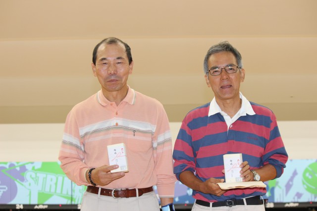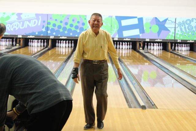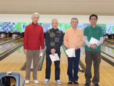 4月8日生まれだそうです。 ゲームの方は、当月は競技会という事で、過去の成績によって夫々のハンディキャップが与えられます。 最大で1ゲームに50点のハンディがあります。そんなハンディキャップをもろともせずNoハンディの 遠藤さんが3ゲームトータル621点でブッチギリの優勝。2位には598点の永田(博)さん、3位は 592点の安田さんが入賞しました。また、続く4位には夜久さん、また5位には鎌田さんと女性陣が 見事570点台を叩いて入賞を果たされました。 表彰式は会場を「アサヒビヤレストラン」に移して昼食会の後に実施されました。 下に入賞者の写真を掲載しております。また、今回は「飛び賞」ではなく、優勝した遠藤さんから 順次くじを引い貰って、当った人は「ラッキー賞」として賞品を貰い受けました。 表彰式の後に、年次総会を開きました。幹事の鎌田さんの進行で関口会長から本年度の活動 実績と新年度の活動計画が、また幹事の今田さんから本年度の会計報告がなされ、全議案 ともに賛成多数で承認を得ました。 ボウリング同好会は発足して満3周年を迎え、現在では会員も40人を超えました。総会を機に 4年目に向けて力強いスタートを切りました。 追伸:会員の大崎文夫さん(伏見中)が関西TV「よういどん!」という番組のインタビューを受け 「となりの『人間国宝』さん」に選ばれました。この模様は4月23日(火)の同番組で放映されます。 是非観てあげてください。 |