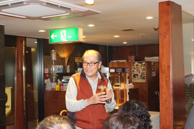準備体操から始り、投球練習に入り、幹事さんの笛で競技会をスタートしました。 年忘れ競技大会は各レーン毎のレーン対抗(団体)戦で成績を争います。 各チームから大きな歓声が会場に響き渡りました。 優勝チームは今田さん、中野さん、森岡さん、遠藤さん、チーム2位には永田一良さん安田さん 竹村さん、山田さん、3位には武久さん、松本さん、鎌田さん、関口さん、平居さんのチームが 入賞されました。競技会終了後に会場を「ミユーヘン」に移して食事会及び表彰式を行いました。 食事会では関口会長の発声で乾杯の後、お酒を酌み交わしながら賑やかな懇談の声が、会場に響き ました。食事会の途中で表彰式が行われ優勝から3位までのチームに賞品が関口会長より手渡され ました。懇談が続いて今年度の反省や来年度に向けた抱負等で盛り上がっていました。宴もまだ まだ賑わいの中ではありますが会長の締めの挨拶でお開きとなって、夫々の帰路につきました。 来年もよろしくお願い致します。また健やかに新年をお迎えされますことをお祈り致します。 |