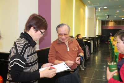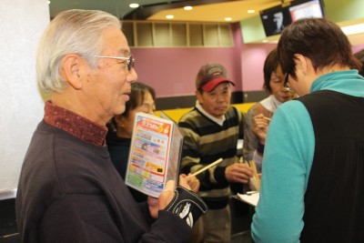 2014年の年が明けて初めての例会を開催しました。 関口会長の新年のご挨拶と鎌田幹事さんからの運営について説明に続いて、例月通り、当月の お誕生月の方にお饅頭をお渡して参加者全員で祝福しました。今月のお誕生月の方は 寺田さん(長岡東)村井さん(向日市)山田さん(府下北部)の3名です。おめでとうござい ます。続いて福袋賞を抽選でくじで行い7名の方にお渡しされました。続いて森岡幹事さんの ホイツスルを合図に例会がスタートしました。ゲームの結果は1位は寺田さん(長岡東)2位は 横山さん(大山崎)3位は遠藤さん(向日市)が好成績を収められました。特に遠藤さんは 6ケ月連続で1位の成績をあげられていましたが、今月は3位で記録がストツプしましたが、 しかしハイゲームは取得されました。 今月は個人のスコアーが大きくアツプしていると思われます。さらにスコアーアツプを目指し 頑張りましょう。残念ながら例会では、景品が出ませんが、頑張って下さい。 来月の例会は2月20日第3木曜日に予定しております。多くのご参加をお待ちしています。 |
