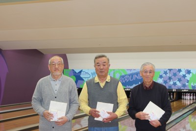おめでとうございます。 続いて森岡幹事さんのホイツスルを合図に例会がスタートしました。 ゲームの結果は1位は遠藤さん(向日市)2位は横山さん(大山崎)3位は竹村さん(伏見中) が入り、お三人とも3ゲームで500点を超える好成績を収められました。特に遠藤さんは 9連続ストライクであわやパーフエクト達成なるか?とおもわれましたが、277点のハイゲーム という記録を収められました。 4月に競技会が予定されておりますが、その際にも是非今回以上の成績を収めてください。 来月の例会は3月20日第3木曜日に予定しております。皆様とお会いできます事を楽しみ にしています。 ヨチヨチ歩きのボウリング同好会も第48回を終える事が出来ました事は皆様のご支援に 心から感謝致します。ありがとうございました。 |