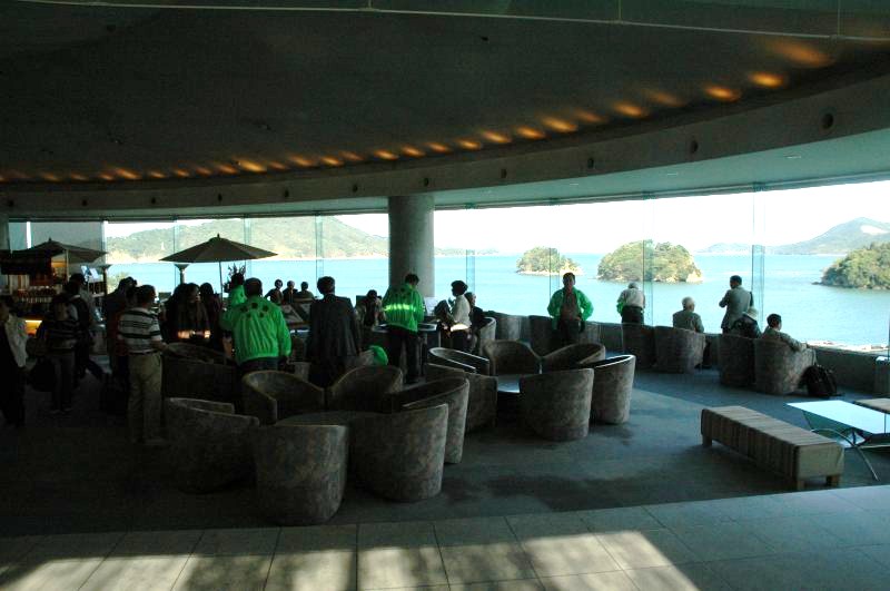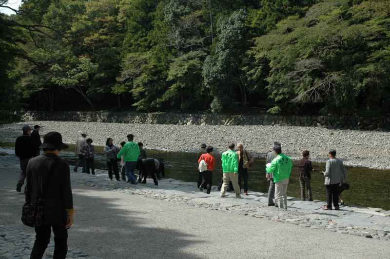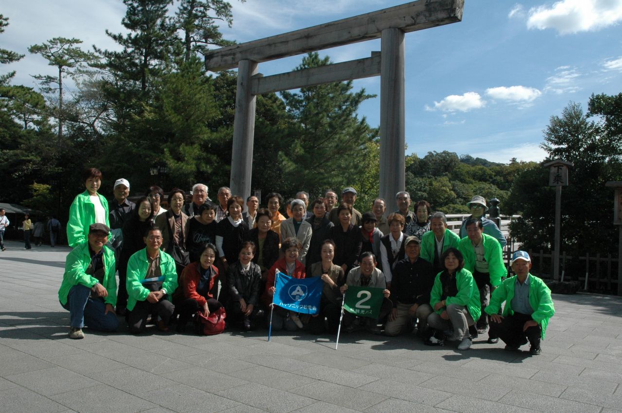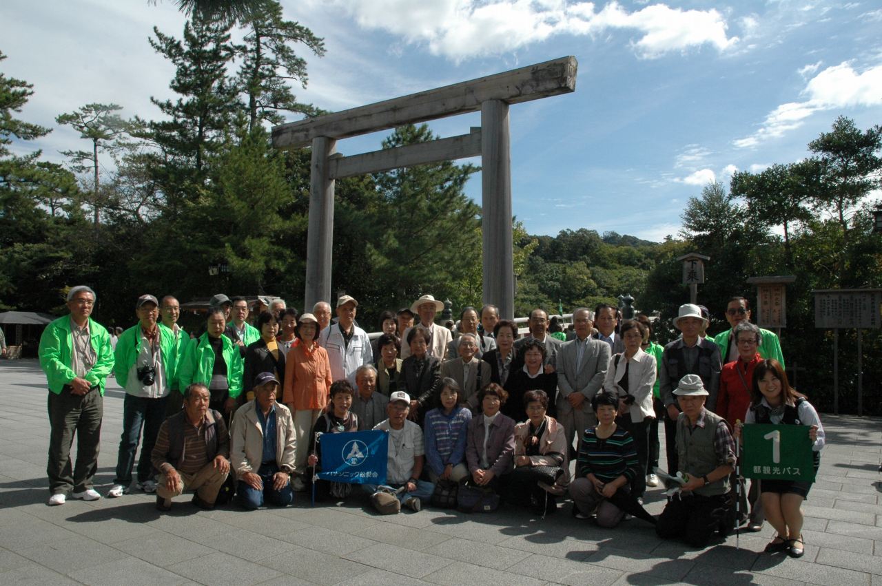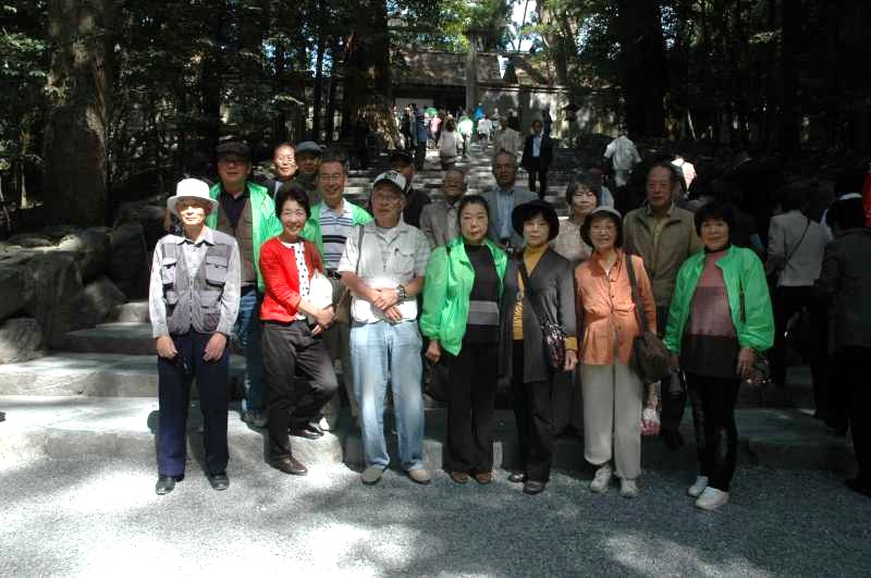 今回は78名の方が参加して、秋らしい好天気のもと、伊勢神宮内宮を参拝しました。 午前8時、バス2台に分乗して、京都駅を出発。新名神高速道を経て伊勢まで、 ほぼ定刻通りの10時30分ごろに無事到着。 バスから降りて、内宮鳥居前で記念写真を撮ったのちに巨木が生える参道を歩いて、伊勢神宮内宮を目指しました。 参道を歩いているうちに心身ともに引き締まっていきます。途中、 石段を登って、皆、神妙にお参りしました。 帰り道の参道では何となく清々しい気持ちです。 次に土産物屋が立ち並ぶおかげ横丁を散策しながら、お土産を買ったり、 赤福の本店で一服したり、昼前の秋を楽しむことができました。 参拝を済ませて、お土産も買ったところで、いよいよお待ちかねの鳥羽グランドホテルでの昼食です。 北村支部長の挨拶と乾杯の後に、 新鮮な海の幸を満喫する豪華な食事を堪能することができました。食事の後はカラオケをする方や、 ホテルの温泉でゆっくりする方、またロビーで伊勢湾の絶景を目の当りにして コーヒーを飲みながら歓談する方など様々です。 そろそろ帰る時刻になりました。鳥羽大漁水産にて海産物のお土産を買った後、一路京都へ向かいました。 バスの中ではビンゴゲームを楽しんでいるうちに、秋のつるべ落としの夕闇が迫ってきました。 ほぼ定刻通りに18時15分に京都駅八条口に無事到着しました。 今日は伊勢神宮に参拝して、清々しい気分で、お土産もたくさん買い、 新鮮で豪華な海産グルメも味わうことが出き、有意義な一日となりました。 |