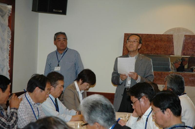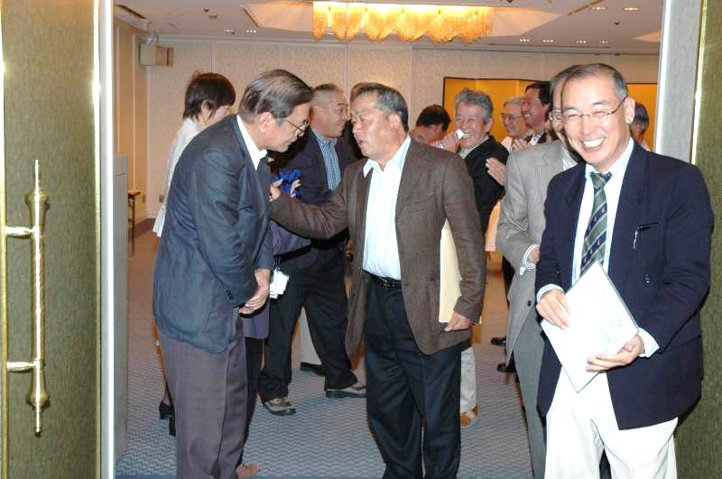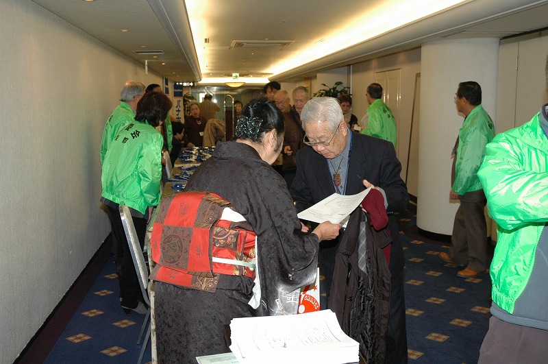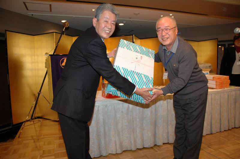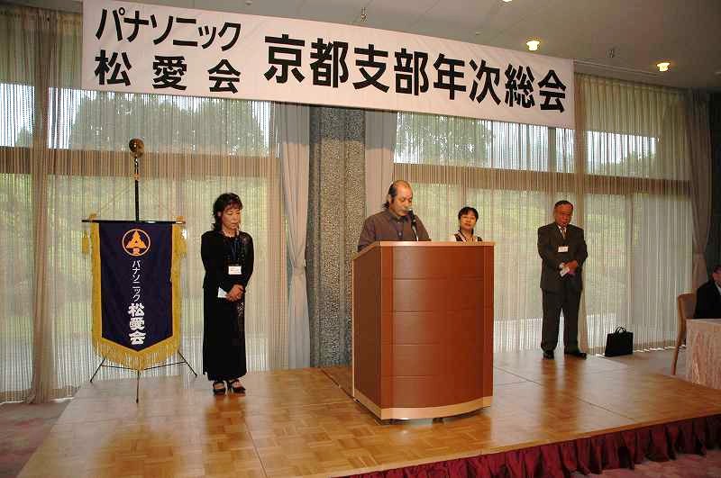 松愛会京都支部総会を開催いたしました。季節外れの台風が心配されましたが、無事開催の運びとなりました。 本年は148名の会員の方が参加されました。 第一部の総会では 今年も、近隣の会員相互の親睦を深めるため、行政地区ごとに着席して、 議事は16名の物故者の方々及び東日本地震の犠牲者の方に黙祷の後、北村支部長の挨拶でスタートしました。 続いて、 松愛会本部より北川事務局長をお迎えして、ご挨拶をいただき、 特色ある活動の必要性について説かれました。 社長メッセージ、全国総会報告の後に、 2010年度は、皆様のご協力により予定の活動を無事終えたことが報告されました。 次に2011年度の役員選任および新旧役員の紹介がありました。 今年度は滝地区委員、平居地区委員、鎌田地区委員、山本地区委員の4名が退任することに なり、 新たに高橋地区委員、萩原地区委員、照井地区委員、舌地区委員、徳野地区委員の5名が着任しました。 退任者を代表して、滝地区委員が挨拶されました。 長い間のお世話ありがとうございました。 北村支部長から、今年2011年度の活動方針が示され、 会員の皆様にきめ細かで、より充実した活動をおこなうことや 65歳節目懇談会等の新たな取り組みが提案されました。 続いて2011年度予算計画も提起され、これら2011年度の活動方針は すべて満場一致で、承認されました。 同好会の活動紹介の後、長年、同好会「その時松下の歴史が動いたー松下幸之助に学ぶ勉強会」に携われ、 このほど、新勉強会へバトンタッチされました 波多野元三郎様に京都支部より感謝状が贈呈されました。 松愛会のスローガンが唱和され、第1部は 終えました。 今年も会員の作品展が開催されました。会議の合間に、 大勢の方が熱心に作品に見入っていました。絵手紙、絵画、手芸など展示され、 作品は皆、力作揃いで、会員の隠れた才能を垣間見ました。 続いて、小休憩のあと、第二部では自由席となり、 和邇博様の乾杯の音頭にて、懇親会がスタートしました。 各テーブルでは親しい人達と酒を酌み交わしながら、 楽しく歓談して、いつまでも話がつきませんでした。 時間の経つのは早いもので、予定の時間が迫ってきました。今年も波多野氏の締めで、閉会となりました。 各人またの再会を誓って、国立京都国際会館を後にしました。 |