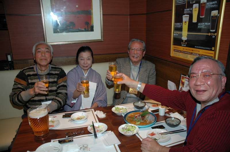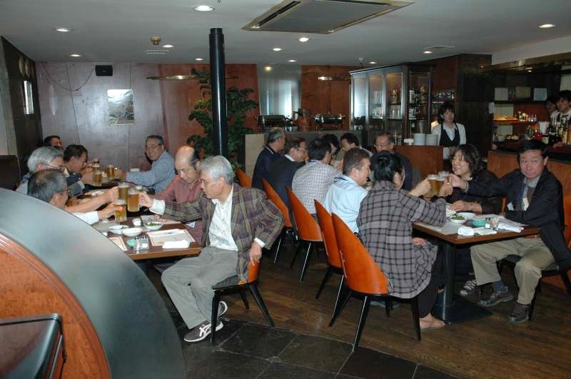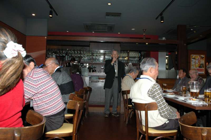 今回は第1部に9名、第2部に10名の新会員が出席し、地区委員17名全員でお迎えいたしました。 場所は京都四条河原町近くの、ビヤレストラン「ミュンヘン」です。今回も第2部の懇親会では同好会活動の一つである二火会に 体験参加していただくことになりました。 まず第1部は午後4時に二火会会場のすぐ横の一室で、森岡地区委員の司会で、スタートしました。北村支部長から歓迎の挨拶と 松愛会京都支部についての歴史、概要、運営方針等について説明があり、特に政治、宗教、現役時の上下関係を持ち込まずに すべてフラットにして、皆で楽しく付き合っていこうという基本方針が示されました。 引き続き、新会員から自己紹介をしていただきました。さまざまな事業部を経験され、皆、豊富な趣味の持ち主です。 次に各地区委員より同好会の説明がありました。 歩こう会から始まり、ゴルフ、グランドゴルフ、二火会、麻雀、勉強会、絵手紙、 そして、ボウリング同好会まで、同好会活動に積極的に参加いただくようお願いし、手ごたえを感じることができました。 次に地区委員の簡単な自己紹介の後、全員で記念撮影をして、第1部は締めくくりました。 隣の二火会会会場ではそろそろ先輩会員の方も集まって来られました。 続いて第2部では二火会に体験参加を兼ねての懇親会です。 まず、畑副支部長の司会で、新会員10名が簡単に紹介されました。 今回は新会員と、地区委員17名、一般の二火会参加者合わせて、50名の盛会となりました。 ビールを片手に、ほろ酔いになると、新会員と京都支部の先輩会員と隔てるものは何もありません。 初対面にもかかわらず、旧来の友人のように、自由にお話を楽しみ、交流することができました。 新会員の中から来月も参加する方がおられれば本望とするところです。 最後は他支部で10年の長きに渡って地区委員を務められ、今期に京都支部へ 転入されてこられた伊勢戸様のご発声により締めました。 今日は新会員の方々との新たな出会いを愉しむことができました。 名残が惜しいですが、次の再会を期待して、木屋町のネオンの中にそれぞれ散って行きました。 |
