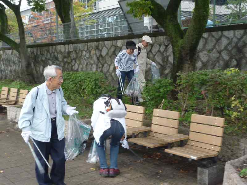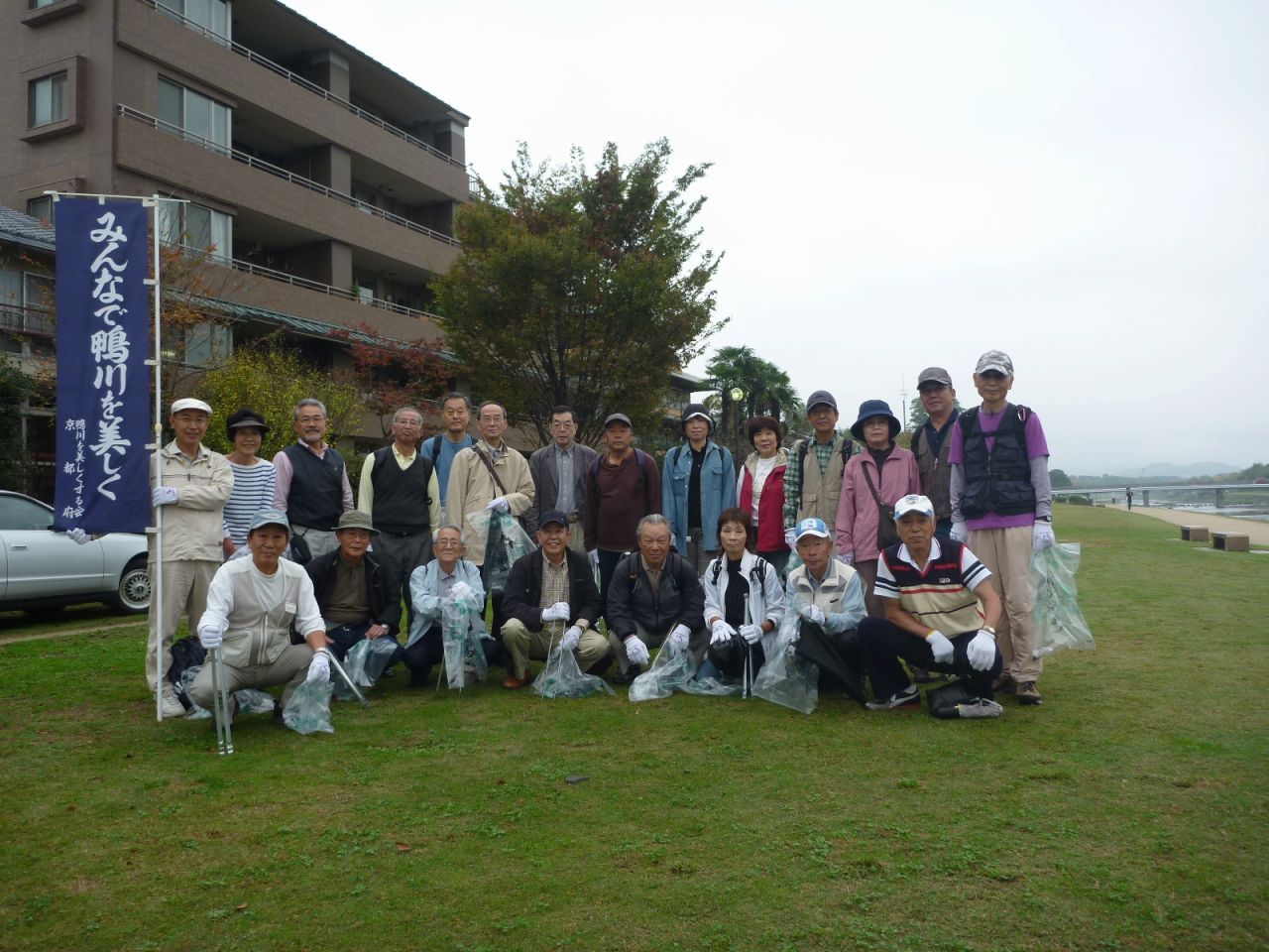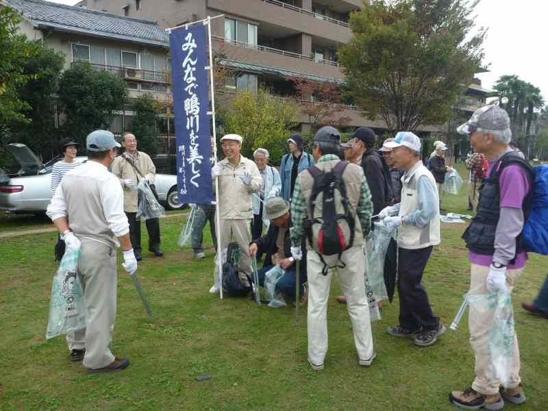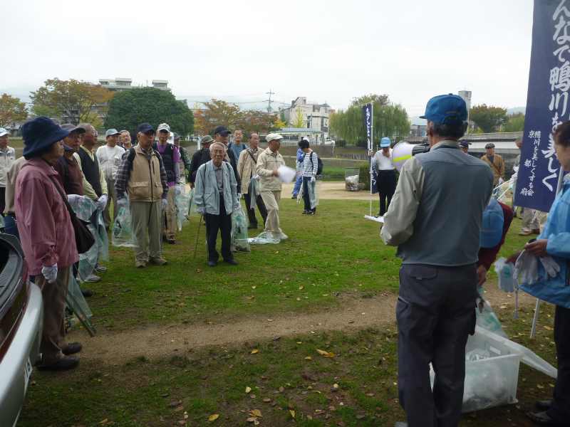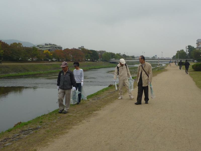 昨夜来の雨で本日の開催が心配されましたが、幸い雨には降られず、曇り空でしたが、無事開催の運びとなりました。 京都支部では「鴨川を美しくする会」と協賛して、今年より鴨川を美しくする会 クリーンハイクと称して、 河川敷の清掃ボランティア活動に 取り組んでいくことになりました。鴨川は京都を流れる美しい河川です。鴨川河畔を散策し、健康維持を兼ねながら、 鴨川の美化運動を通じて地域に貢献できます。 京都支部松愛会会員にも呼びかけて、27名の方にご参加頂きました。ありがとうございました 10時に鴨川の丸太町橋北西詰めに集合して、手袋を着用、ごみをつかむはさみとごみ袋を手にして、準備は整いました。 参加者全員で記念撮影をした後、「鴨川を美しくする会」の主催者の方とミーティングをして、 いよいよ鴨川河畔の西岸を中心としてクリーンハイクをスタートしました。 一見してごみはあまり見当たりませんが、それでも注意深く見ると、 ところどころにごみが散乱しています。特に、人の座るベンチまわりや木陰などはねらい目です。 鴨川の清流には時折白い水鳥が羽を休めて、我々を見守ってくれました。 丸太町からスタートして、ゴールの北大路橋のたもとに辿り着くころには 皆それぞれ、今日の「収穫」を手にして、満足げでした。 京都を流れる鴨川の清流にささやかですが貢献できたました。皆心地よい汗をかいて、 すがすがしい気分で、帰途につくことができました。 |