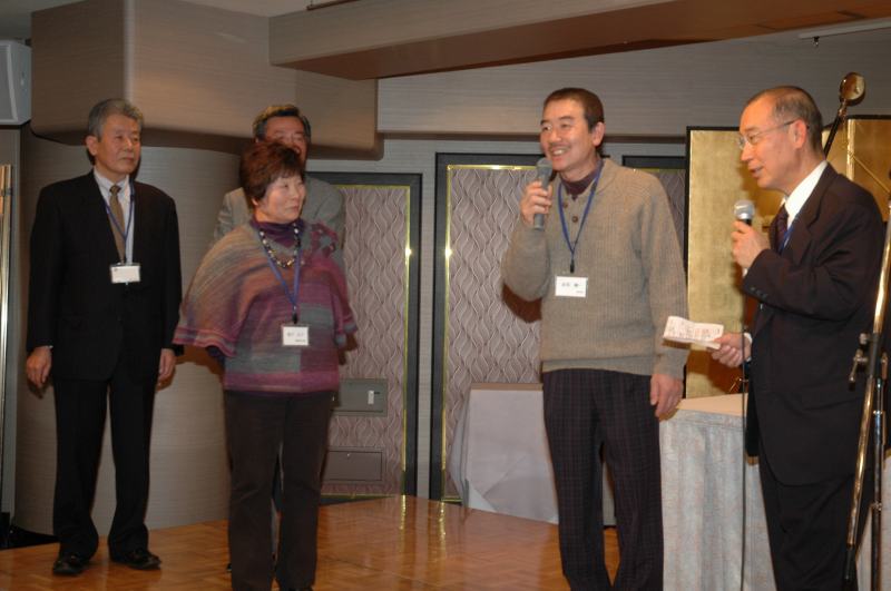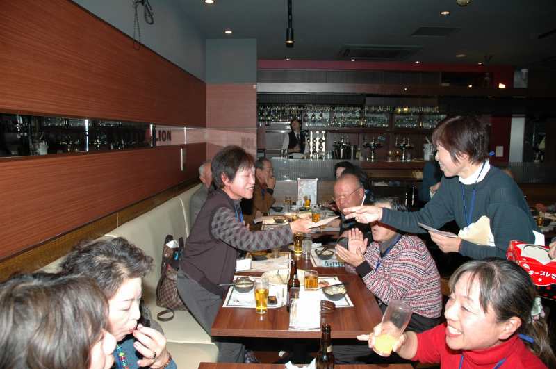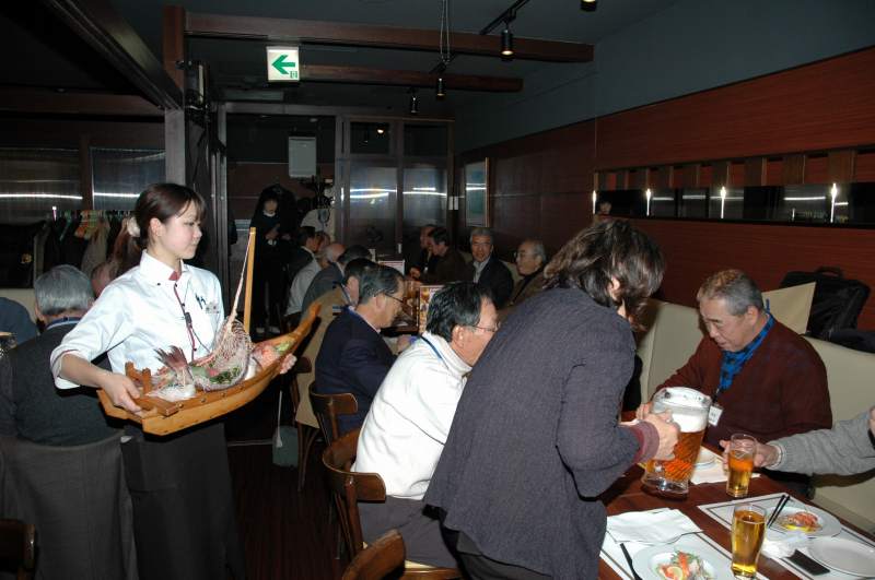 支部役員OB・同好会世話役・支部役員合同懇親会を実施いたしました。 支部役員OB、各同好会世話役、現役支部役員が、毎年12月に一同に会して、 お互いの懇親を深めています。今年は44名が参加しました。 懇親会は大江副会長の司会でスタート。北村支部長の挨拶、乾杯の音頭で始まりました。 しばらくご無沙汰している人もおられましたが、お酒が入るとすぐに皆打ち解けてしまいます。 テーブルのあちらこちらで楽しい話が聞こえてきます。 間もなく、豪華な舟盛りの登場です。各テーブルではさらに盛り上がります。 会もたけなわの頃に、まず、今年に任命された新地区委員から 出身事業所、担当地区などを交えて、簡単に自己紹介していただきました。 今年度は5名の新地区委員を迎えました。 そして、各同好会からは近況を語って頂きました。 絵手紙同好会からは来年の干支をデザインした色紙が「銀座ライオン」の店長に贈呈されました。 次に、抽選により、百貨店の商品券が10名の方に当たりました。抽選をするたびに歓声が上がります。 最後の締めはゴルフ同好会の古郷会長から本願寺で聞いた講演会の興味深い話を交えて締めていただきました。 名残惜しいですが、予定の時間が来ました。今年は東日本震災をはじめいろいろな出来事がありましたが、 来年はきっと良い年になるに違いありません。再会を約束して帰途につきました。 |