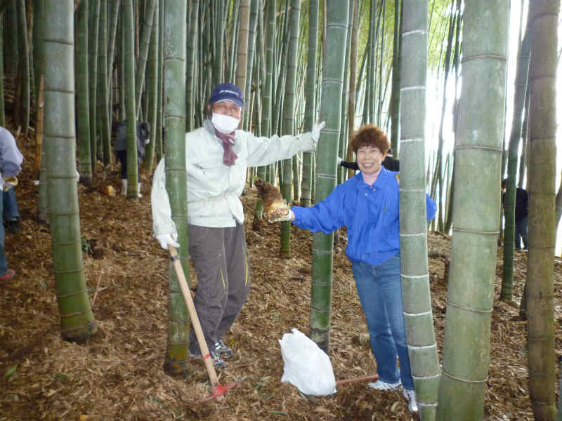 ご参加頂いて2日間の参加者が総勢が80人にもなりました。 今回は、両日ともに天候の悪さから当日の実施が危ぶまれましたが、当日の朝になって ようやく「何とか実施できる」と判断できるような状況の中で、筍の方は昨年とは比べものに ならないくらいの豊作で、沢山収穫できました。 少しでも多く収穫しようと、お父さん・お母さん・又はお爺ちゃん・お婆ちゃん、また一緒に 参加したチビッコ達も力を合わせて「よっこらしょう!こ〜らしょ!」と大きな掛け声を あげながら、筍掘りに精を出しました。乙訓の筍は全国的にも有名で、自分で収穫した 筍を持ち帰った参加者の皆さんはさぞかしご家族や知人にご自慢の事だったでしょう。 筍を育成するには竹林の間伐が必要です。来年も沢山の筍が取れるように、これからも 竹林間伐作業等のボランティア活動にもご協力をお願い致します。 次回の竹林活動は6月23日(土)に予定しております。多くの方のご参加をお待ちしております。 尚、初めてご参加頂く方は、京都支部の地区委員にご相談ください。 |