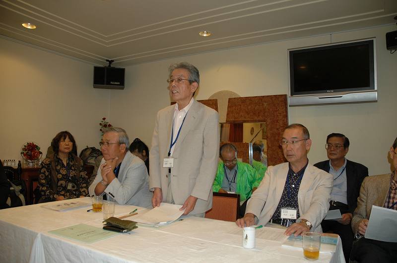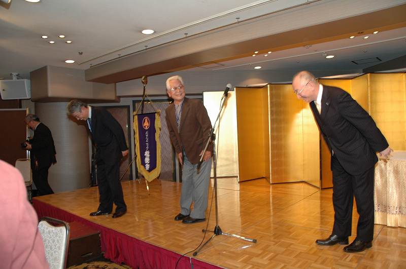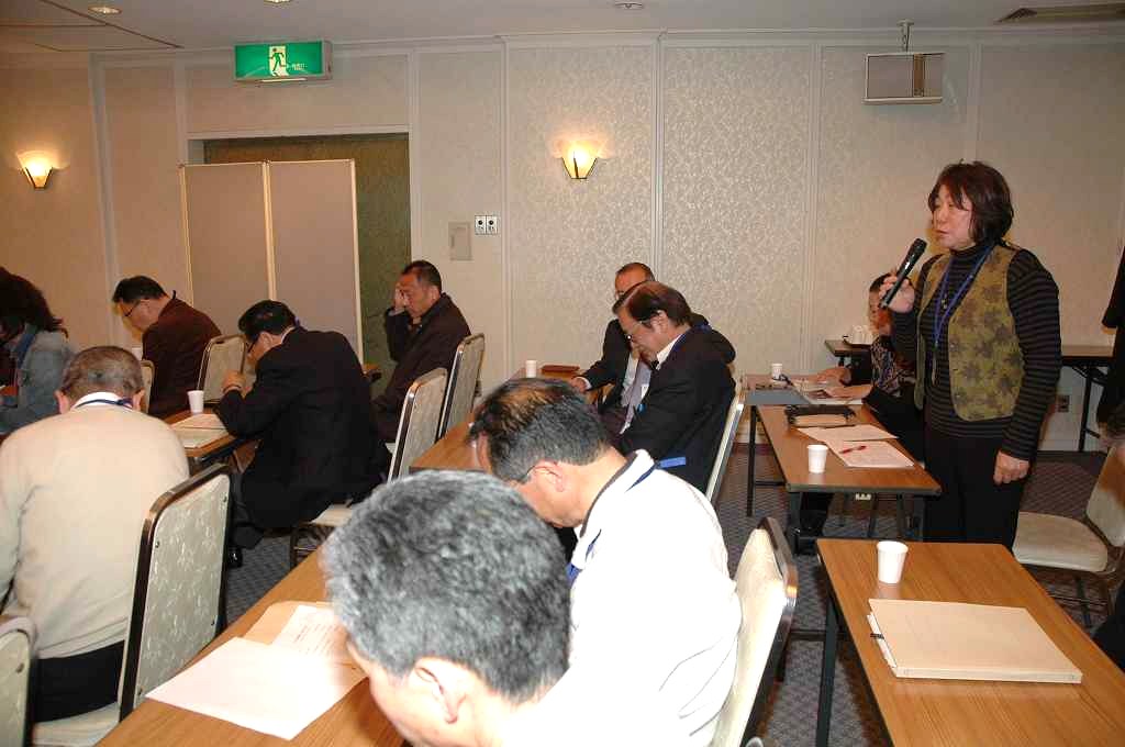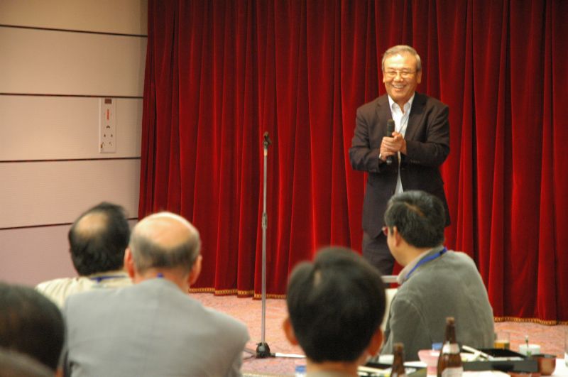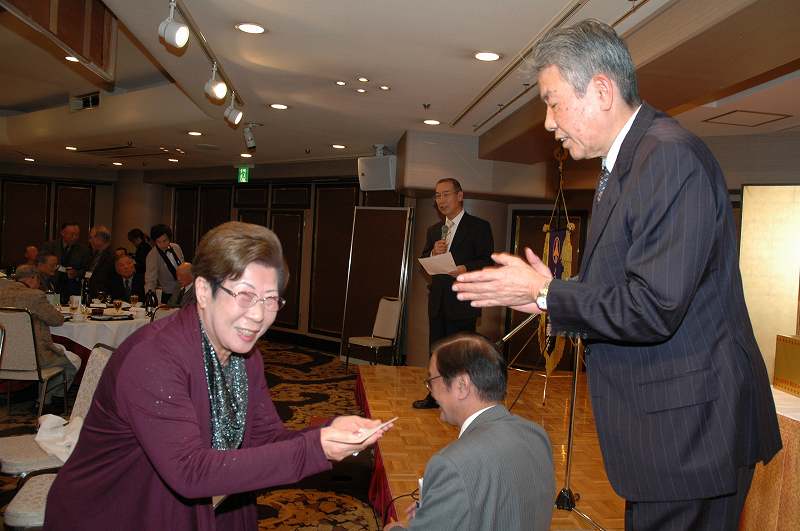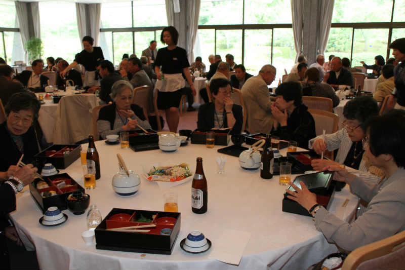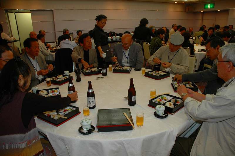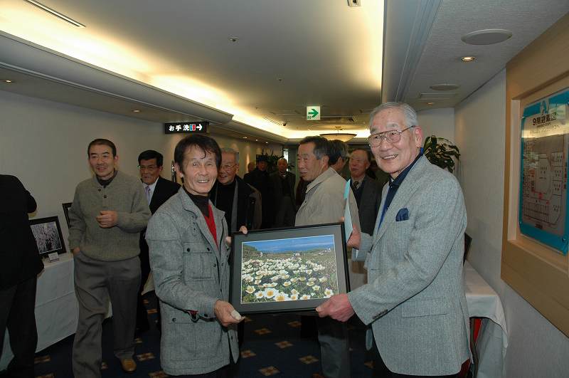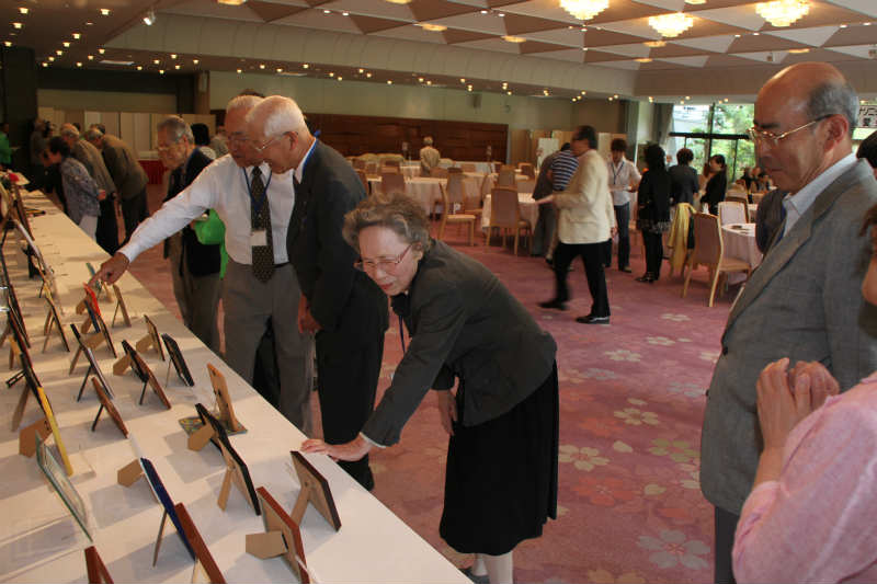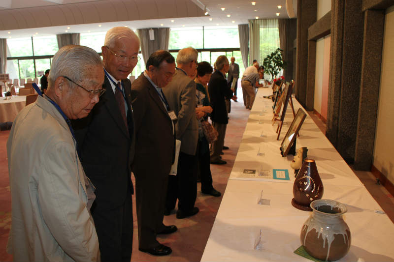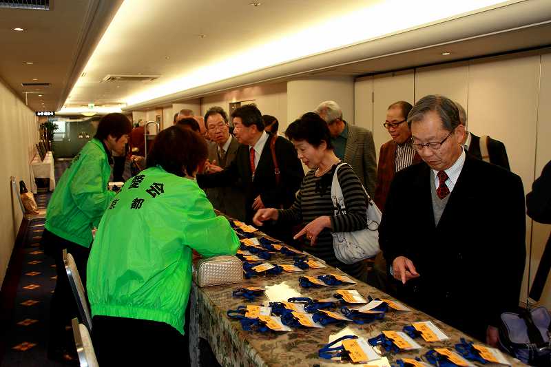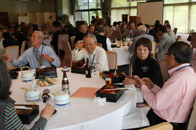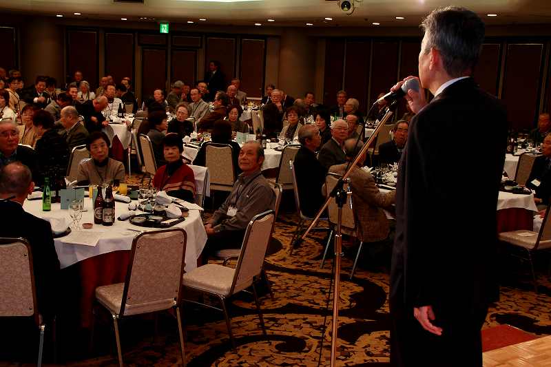 スライドショーで写しだし、総会に出席頂いた会員の方々に視聴して頂きました。 本年の総会には145名の方が参加されました。第一部の総会では、近隣の会員相互の親睦を深めるために行政地区ごとに 割り振りされた座席に着いて頂きました。議事に入る前に本年から議長の選出が行われ、第一部司会担当の大江副支部長が 議長に指名され、議事の進行を担当しました。議事は先ず、会員及び配偶者32名の物故者の方々に黙祷を捧げました。 その後、北村支部長の挨拶があり、続いて、来賓としてお迎えした松愛会本部の和田副会長からご挨拶を頂き、京都支部の 活発な諸活動に対してお褒めの言葉を頂戴致しました。その後、社長メッセージの披露、全国総会の報告、京都支部前年度の 活動経過、会計報告がなされ、会員のご理解とご協力によって予定の活動が無事に終了できたと報告されました。 次に2012年度の役員選任および新旧役員の紹介がありました。今年度は畑副支部長、住山地区委員の2人が退任し、 新たに栗山地区委員、石野地区委員が就任しました。退任の2人には温かい感謝の拍手が湧きました。 退任者を代表して畑さんから府北部担当者として、地区委員から副支部長時代の懐かしい思い出を交えて挨拶されました。 続いて、北村支部長から本年度の活動方針が示されました。本年も引き続き、支部と会員の絆をより深められるように、 一人でも多くの会員に参加いただける各種の行事・活動・同好会活動を積極的に行うと力強く発表されました。 その後引き続いて、2012年度の予算計画が説明され、これら2012年度の活動方針は全て満場一致で承認されました。 会員2名からの質疑応答の後、冨上地区委員の発声のもとに松愛会のスローガンが唱和され、第一部を終えました。 会場後方では今年も「文化作品展」が開催され、大勢の方が熱心に作品に見入っていました。絵画、写真、陶芸、手工芸を はじめとして、絵手紙同好会からの沢山の展示の作品はどれも力作揃いで、日頃の会員のご精進の結果を拝見することが出来ました。 小休憩の後、第二部が開催されました。本年も第二部の昼食懇親会の席は自由席として、和田副会長のご発声による乾杯で 開宴しました。宴の途中には長岡京市市議会の進藤議員からのご挨拶も頂きました。どのテーブルでも酒を酌み交わしながら 愉しく歓談する風景が見えました。予定の時間が迫ってきたところで、今年は前京都支部支部長の大崎さんの元気な締めの挨拶で 閉宴となりました。会員さんは三々五々ほろ酔い機嫌で名残惜しくも心地よく帰路に着かれました。 |