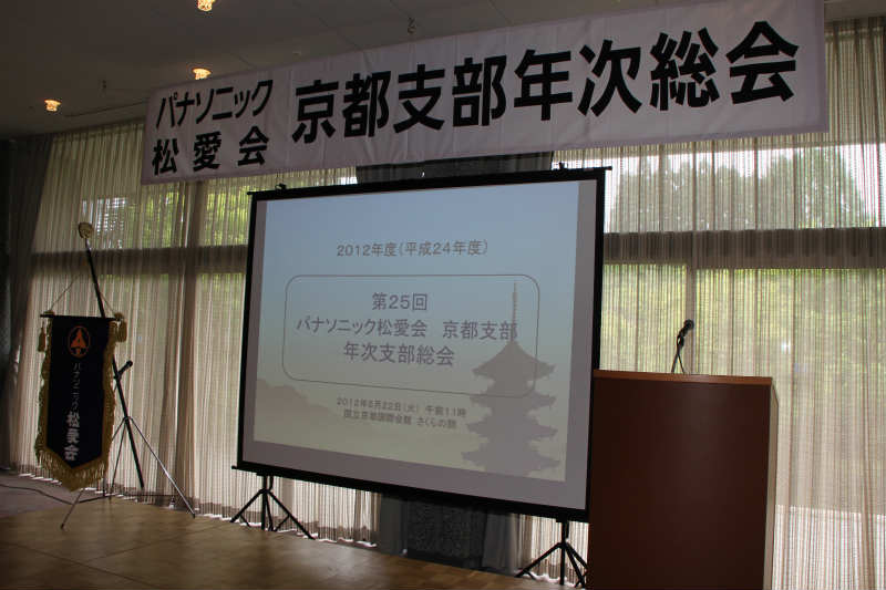 本年は京都支部で購入した液晶プロジェクターを使って、会場正面の壇上に設けられたスクリーンに前年度の活動内容を