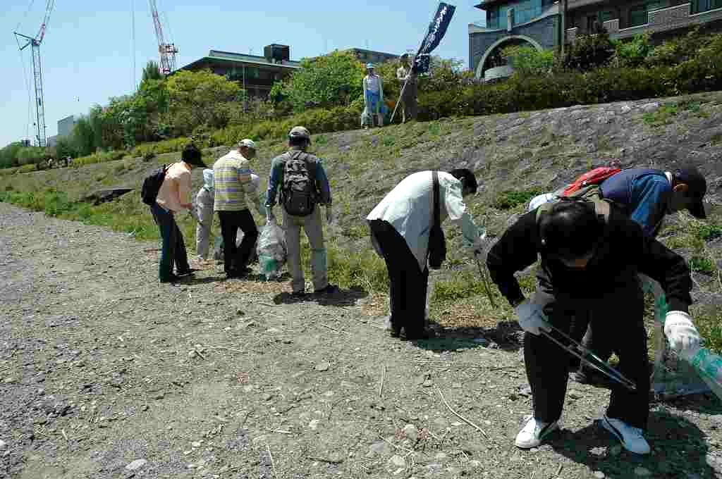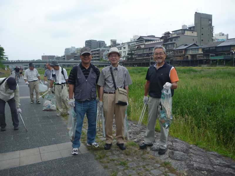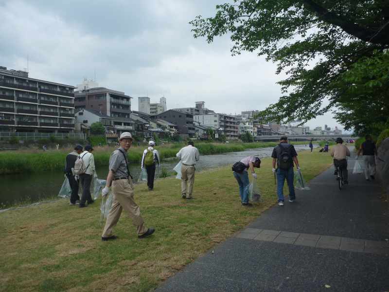 京都支部では「鴨川を美しくする会」と協賛して、鴨川河川敷の清掃活動を展開しています。2012年6月3日(日)に