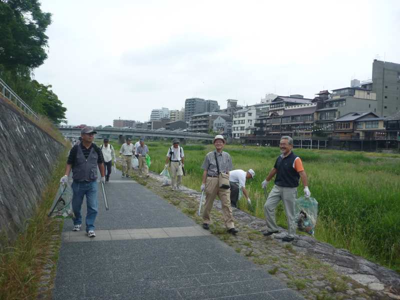 松愛会京都支部では「鴨川を美しくする会」に協賛して、鴨川河川敷の清掃活動に一役かっています。