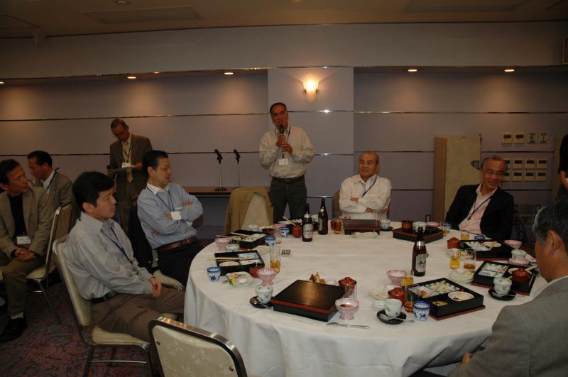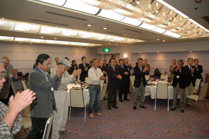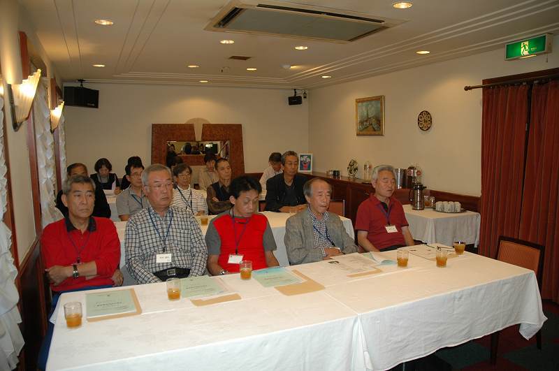 地区委員は17名全員でお迎えいたしました。都合47名が参加して大盛況となりました。 特に今年3月には地元半導体部門を中心として、大量の方が退職され、 大勢の方をお迎えいたしました。顔見知りの方や、かって一緒に仕事をした方も たくさんお見受けしました。久し振りにお会いする懐かしい方もいらっしゃいます。 会場は静かなたたずまいを見せる京都御所のすぐ近くの京都平安ホテルです。 まず第1部は2階嵯峨の間で10時から 栗山地区委員の司会でスタート。北村支部長から、歓迎の挨拶、 京都支部の概況、支部行事、運営方針等の説明があり、次には 新会員から、出身事業場、住居地区等について 簡単に自己紹介してもらいました。 その後、地区委員が手分けして、9つの同好会活動の概要を説明しました。 新会員の方も是非、積極的に参加していただくようお願い致しました。 次に、地区委員からも出身事業場、担当地区について簡単な自己紹介の後、 出席者全員で記念撮影をして、第1部は終わりました。 引き続き第2部では会場を3階の羽衣の間へ変更して、 会員相互と地区委員の親睦と理解を深めるため、 昼食をとりながらの懇親会です。 司会は大江副支部長へバトンタッチして、まず北村支部長の音頭で乾杯! しばらくの昼食の後、 再び、新会員の方から、自己紹介をして頂きました。 今度は趣味や、近況について、打ち解けた雰囲気で自由に語って頂きました。 皆さん第1部とは打って変って良く喋られましたが、 時間の制約もあり、まだまだ言い足りなかった人もおられた程です。 釣り、ゴルフ、テニス、旅行、写真、山歩き、水泳等多彩な趣味を楽しんでおられます。 新会員の方とお話を交えると、何名かの方は同好会活動にも興味を持たれたようで、 手ごたえもしっかりと感じられ、心強い限りです。 最後は永田副支部長の締めの挨拶で閉会となりました。 歓迎会が終わって烏丸通りに出ると、雲一つない秋晴れです。道行く人々の顔も和やかです。 プライダル店の前で偶然、花嫁姿に接し、華やいだ雰囲気になりました。 京都支部でも新会員の方をたくさんお迎えして、新たな雰囲気のもとに、 活発な支部活動が期待できるに違いありません。 |