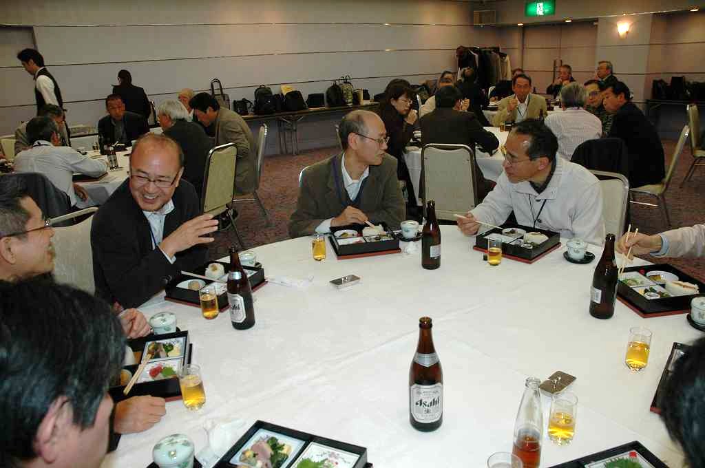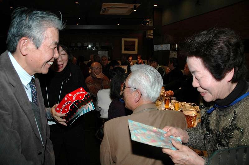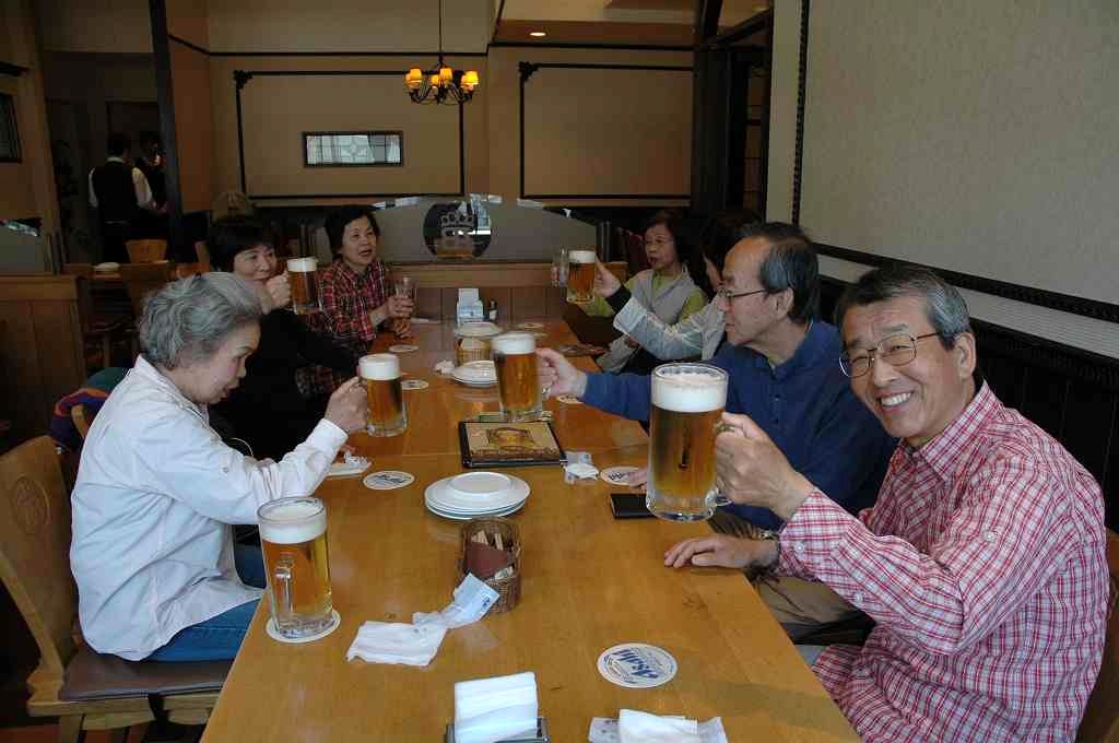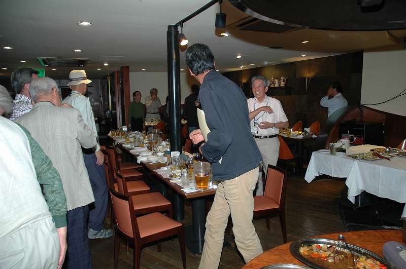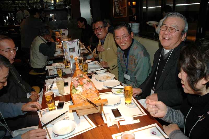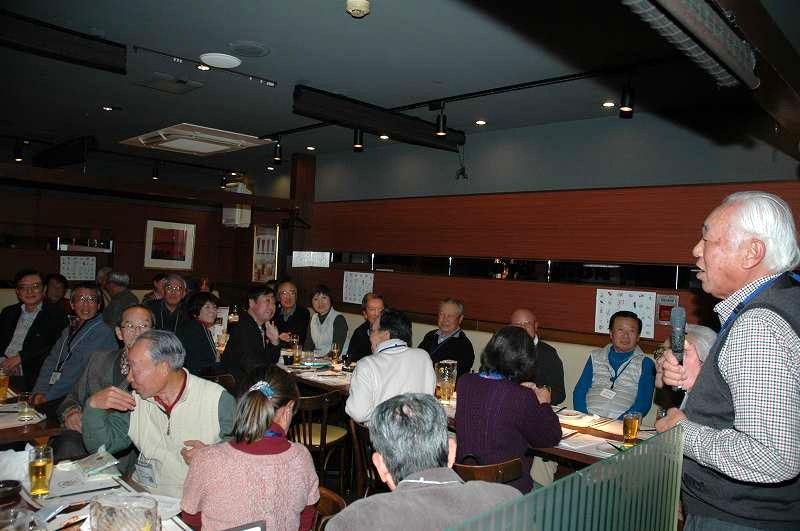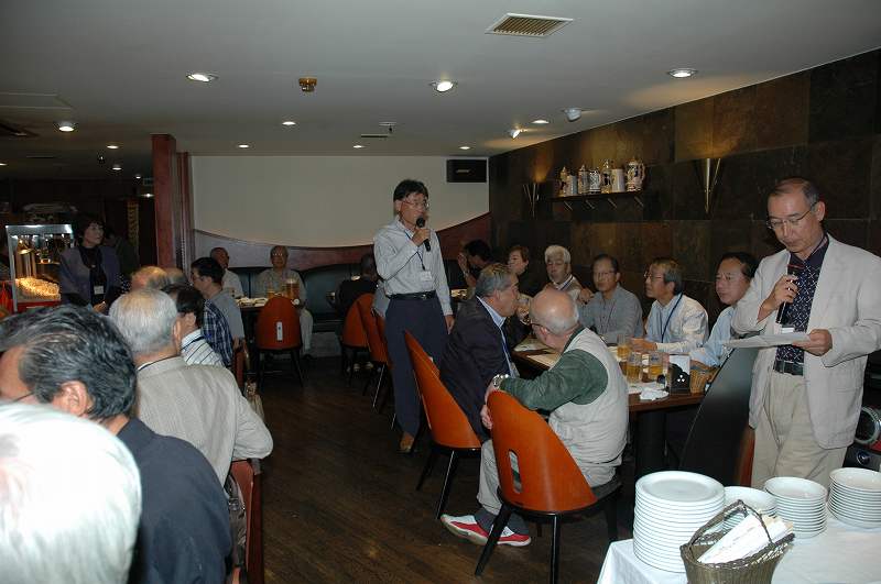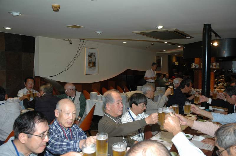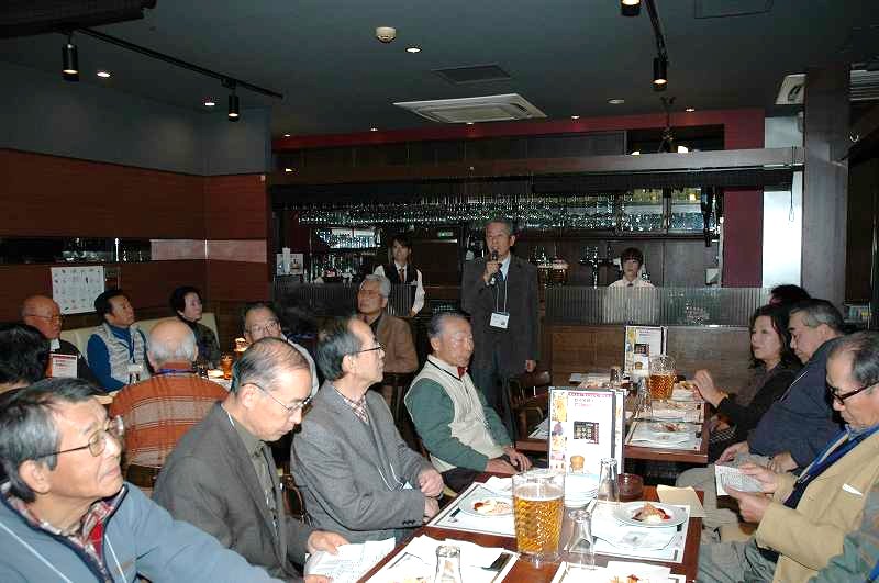 合計33名で、京都四条河原町近くのビヤレストラン「ミュンヘン」で開催されました。 最近では退職後も引き続き仕事に従事されている方も多く、松愛会活動へ参加される方が 減少傾向にあります。 年金受給が開始され1つの転換期と考えられる65歳の節目に 松愛会活動をより一層理解すると共に関心を高めてもらうために、ROKU-GO懇談会が企画されました。 今年が2回目の開催で、第2部の懇親会は2火会への体験参加も兼ねています。 まず第1部では照井地区委員の司会でスタート。続いて北村支部長の挨拶、 松愛会京都支部についての概況報告がありました。 その後に、京都支部の9つの各同好会について地区委員が手分けして概要説明を行い、 各種同好会に積極的に参加するようにお願いしました。 次に65歳会員の自己紹介です。出身事業部や、住居地区、趣味について 簡単に語って頂きました。様々な趣味を持ち合わせられています。 次に地区委員からも簡単に担当地区、出身事業部等の説明があり、全員で記念写真を撮って 第1部を終えました。 引き続き第2部では同好会2火会とのコラボレーションによる懇親会です。 常連の2火会参加者に加えて、65歳会員、地区委員が加わり、 全部で55名の参加者を得て盛況でした。 2火会日夏会長の挨拶の後、大江副支部長の司会でスタートしました。 まず、2火会に参加された方への65歳会員の自己紹介です。 出身事業部、行政地区などについて一言ずつ 簡単に自己紹介をして頂きました。 二火会常連の遠藤さん、森岡さんも今日はあらためて自己紹介されました。 各テーブルでは各自ビールを一口飲むと、すぐに打ち解けて 懇談することができました。 また、退社以来会うことがなかった友達や同僚との思いがけない出会いも多々あったようで、 歓声があちらこちらのテーブルから聞こえてきます。 新たな出会いを今日は十分楽しむことができました。 最後は波多野様の締めで2火会とのコラボレーションによる65歳会員懇談会は 無事終了致しました。会場を出て、秋色が深くなった木屋町通りを歩くとネオンが ひときわ明るく輝いていました。 |