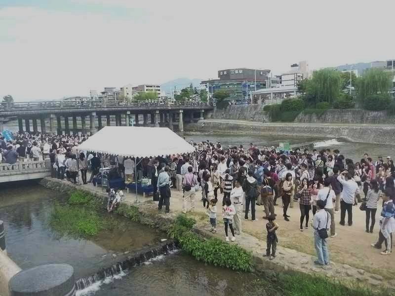 第2回目の鴨川クリーンハイクを実施致しました。 当日は曇り勝ちの天気でしたが、時々首もとを流れるそよ風は気持ち良いものでした。10時に五条河原の 北西岸に集合。この近くには牛若丸と弁慶の石像も立っています。 京都支部松愛会会員は21名が参加して、他の一般参加者と合わせて、約60名が鴨川河川敷の清掃活動に参加しました。 「鴨川を美しくする会」の世話役の方とミーティングの後、ごみ袋、手袋、ごみつまみを皆それぞれ手にして、いざ出発! 今回我々松愛会会員は東岸を中心に清掃活動を行いました。 最近の鴨川の河川敷は一見してごみはほとんど見当たりません。でもよく見ると茂みの近くや目につかないところには 少しごみがあります。ごみを見つけては袋に詰めて行きます。 清掃活動をしながら注意してみると鴨川の周辺にはいろいろな目に引くものがあり飽きさせません。 まず、子猫が私達を迎えてくれました。四条近辺まで来ると、料理屋から床がたくさん見えます。 もうすぐ床料理の季節です。もうあとひと月もすれば、 床料理を楽しむ人たちがたくさん押し寄せます。京都ならではの景色です。 しばらく進むと、魚釣りをしている人達にも会いました。今日6月3日は鮎釣りの解禁日でした。 また中州では白鳥も私達を見守ってくれました。 ゴールの丸太町の橋が見えてきました。丸太町の橋のたもとでは明治時代の女子の教育機関であった 女紅場の碑も見つけることができました。 また、ふと目を見やると茅葺屋根が見えます。頼山陽の山紫水明処だそうです。 普段は気にも留めない京都の小さな隠れた名所も垣間見ることができました。 気が付いてみると皆たくさんのごみを集めていました。ごみを世話役に渡して、冷たいお茶を飲むと、 今日一日の疲れも癒されました。松愛会の参加者全員で集合写真を撮り、清掃活動を無事終えることができました。 今日は少し世の中のためになることをして、気持ちよい汗を拭いながら、皆さん気分良く帰途に着くことができました。 |