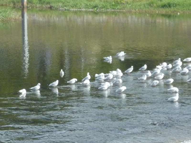 北大路橋までの鴨川西側の河川敷を清掃致しました。 まず「鴨川を美しくする会」の事務局の方の説明を聞いて、スタートしました。 いつも鴨川沿道の和やかな風景には心も和みます。スタートしてすぐに、 幸運にも今年初めて飛来したユリカモメに会うことができました! ユリカモメは毎年10月から11月にかけて鴨川に飛来します。 夕方になると鳥柱を作って、高空まで舞い上がり、 気流に乗って、寝床の琵琶湖へ向かい、日が昇るとまた鴨川へ戻って、魚を取り、羽を休めます。 年が明けて3月になるとシベリヤへ向かうようです。 しばらく進むと、大きな猫がいます。また笛を練習する人にも会いました。 大きな木もあります。鴨川越しに比叡山もくっきりとその姿をたたえていました。 ゴミもだいぶたまってきました。ゴールの北大路橋も見えてきました。 一休みして、参加者全員で記念撮影をして、さわやかな汗をぬぐいながら、 帰路につきました。 |