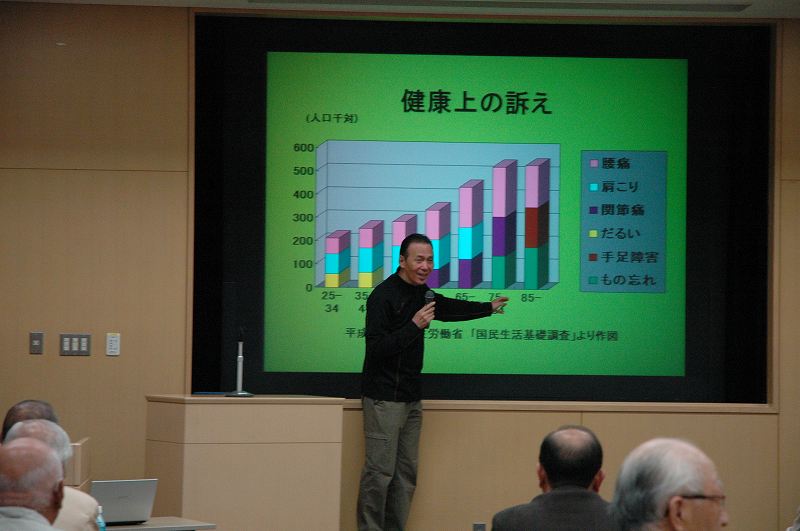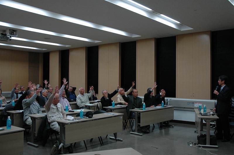 年を経るにしたがって、健康に関心がある人が多く、皆熱心に聞き入ってました。質疑応答でも質問が相次ぎ、