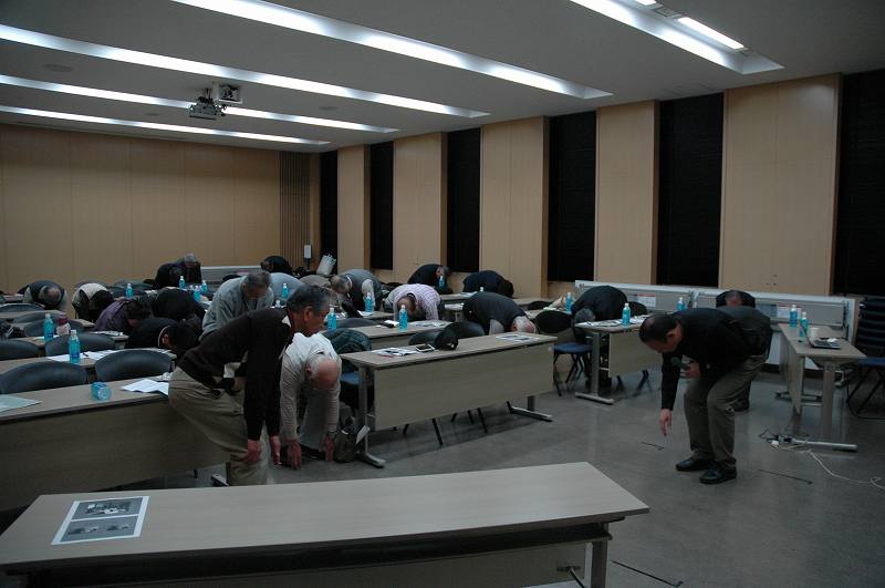 具体的には、大江副支部長の挨拶で始まり、ERJの小牧さんの作業説明につづいて準備体操を行い、