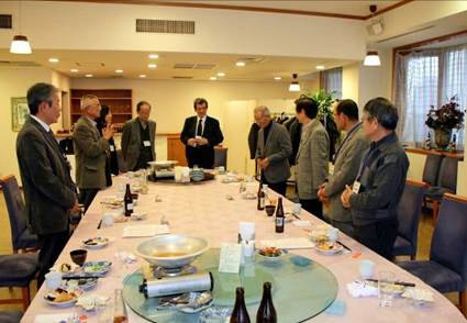2012年度北部懇親会を開催しました。 京都市での行事が遠方となり参加が困難な府北部会員を対象に 「北部地区懇親会」を開催して今年で8年目を迎えます。 今年は「松愛会設立40周年」の節目の年に当たり、松愛会本部より山下会長様にもご臨席をいただきました。 懇親会会場も例年の福知山より舞鶴に移し、窓辺から海の眺めが素晴らしいホテルで開催し、北部の会員9名、 京都支部役員6名と山下会長の16名で和やかな雰囲気の中で楽しい時間を過ごしました。 あいにくの空模様で短い時間でしたが綺麗な海も眺めることが出来、 それ以上に皆様の元気なご様子に接することができました。 また、書家であり、日展などに入賞されている苧阪雅也様の奥様の展覧会が舞鶴市市政記念館で開催されていましたので、 懇談会後に移動して力作作品の数々を鑑賞しました。 苧阪様の奥様の展覧会で松愛会の会報の表紙を飾る「松愛」の原本に接することが出来、 40周年の記念にふさわしい会にさせていただく事ができ感謝しております。 |