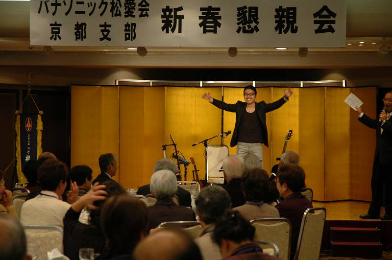 本部より北川事務局長をお迎えし、162名の方が参加して、大盛況のうちに開催することができました。 まず、第1部のアトラクションは大江副支部長の司会でスタートしました。 今年は長岡京市在住のミュージシャン富岡洋様によるアコースティックライブです。 ギター片手に、また途中からはウクレレにも持ち替えて、軽妙なトークを交えて、 ブルース、ジャズ、ハワイアン、フォーク、ポピュラーからオリジナル曲までを披露下さいました。 後半では皆で「上を向いて歩こう」と「見上げてごらん夜の星を」を合唱して大いに盛り上がりました。 第1部終了後の合間にはロビーで富岡洋様のオリジナルCDが即売されました。 CD1枚1枚にすべてサインされ、長い行列ができ、飛ぶように売れていました。 また今回は昨年発足した写真同好会の会員全員の作品 22点がロビーで展示されたくさんの方が見入っていました。 作品はどれも力作ぞろいです。大好評でした。 続いて第2部はお待ちかねの懇親会です。 北村支部長と北川事務局長の挨拶の後に、 今年の年男の大崎文夫様の乾杯の音頭でスタートしました。 新春コース料理と飲み物を頂きながら、会員相互の懇親を大いに深めることができました。 和やかな新春のひとときを楽しむことができました。 宴の後半では恒例の大抽選会が始まりました。北村支部長がくじを引くたびに会場から歓声があがります。 1等のパナソニック製デジタルカメラから楽しいグッズまで次々に賞品が当たります。 業者からも賞品をたくさん提供頂きました。当たった人は皆嬉しそうです。 また、今回は特別に写真同好会より展示されている写真3枚が抽選で当たることになりました。 最後は同じく年男の歩こう会会長の藤本正之様によって締められました。 北村支部長や八木写真同好会会長、そして北川事務局長も次々に檀上に呼び出され労われました。 名残惜しいですが、時間のたつのは早いもので、お開きの時間となりました。 参加賞のライト付きキーホルダーを手にして、 来年の再会を期して帰途につきました。きっと今年は良い年になるに違いありません。 写真同好会の展示作品は、ここから見ることができます。 |