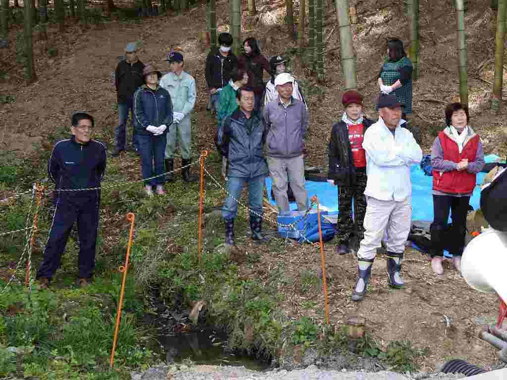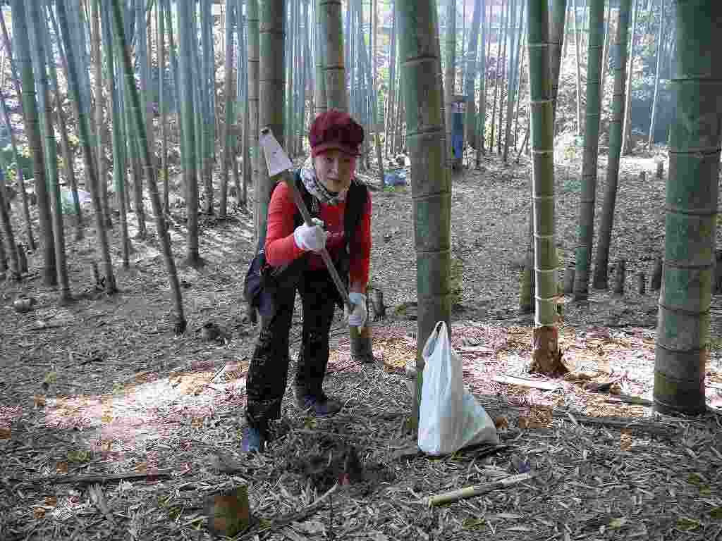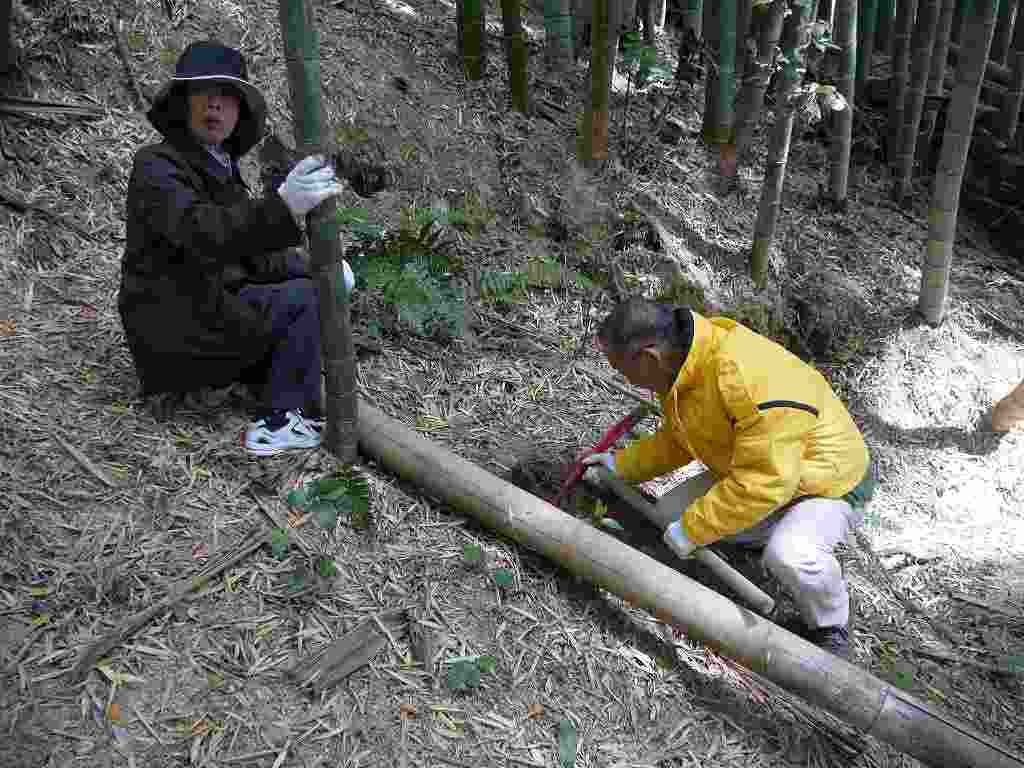 竹林で筍掘りを行いました。 当日はあいにく朝からの曇り空で、いつ雨が降り始めるか分からない微妙な天候の中で28人もの方に ご参加頂いて予定通りに筍掘りを行いました。冒頭に北村支部長からご挨拶を頂いて早速筍掘り に掛りましたが、数分後には小雨が降り始めて、約1時間くらいは小雨の中での奮闘戦でした。 時期が未だ少し早かったのか、或いは筍不作の年なのか、今年は思うように筍が見つけ出せずに 悪戦苦闘した結果、全部で収穫できた筍は極めて小さなものも数えて僅か26本でした。 また、雨脚が強くなってきましたので、途中で切り上げて竹林現場から近くの「西山公園体育館」に 一時避難的に移動しました。こんな事は、竹林活動開始以来初めての出来事で「忘れられない記憶」 となりました。 西山公園体育館では、お弁当を待つ間に収穫した26本の筍を公平に分け合うために 「クジ」を作って抽選しました。その結果、古川さん(向日市)、北村さん(右京区)、藤田さん(長岡京西)の 3人が大きな筍をゲットされました。竹内さん(東山区)、鎌田さん(長岡京西)、石野さん(長岡京西)の 3人の方には「クジ」の結果とはいえ、小雨の中で懸命に奮闘して頂いたのに、女性の握りこぶし程度の 小さな筍しか持ち帰って頂くことが出来ず「ごめんなさいね」本当に心からそんな気持ちにまりました。 お弁当が到着して、体育館内で食べる人もいましたが、その場で解散して夫々の帰路に向かいました。 次回は4月20日(土)に再度筍掘りに挑戦です。今度は沢山の筍を掘り出してくれることを期待していま〜す。 |