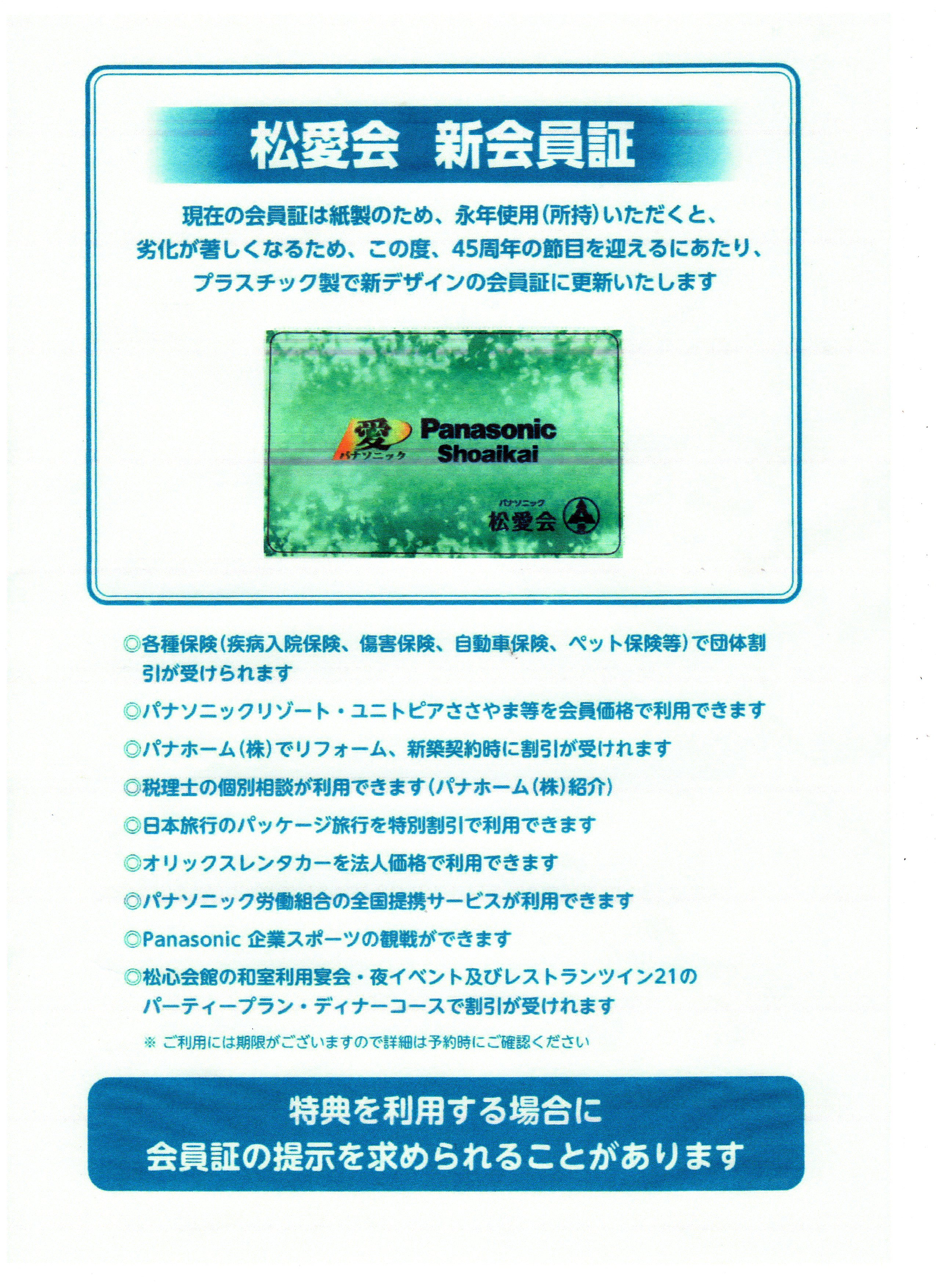会報「松愛」10月号に松愛会45周年を記念して、リニューアルされた会員証が同梱・送付されます。