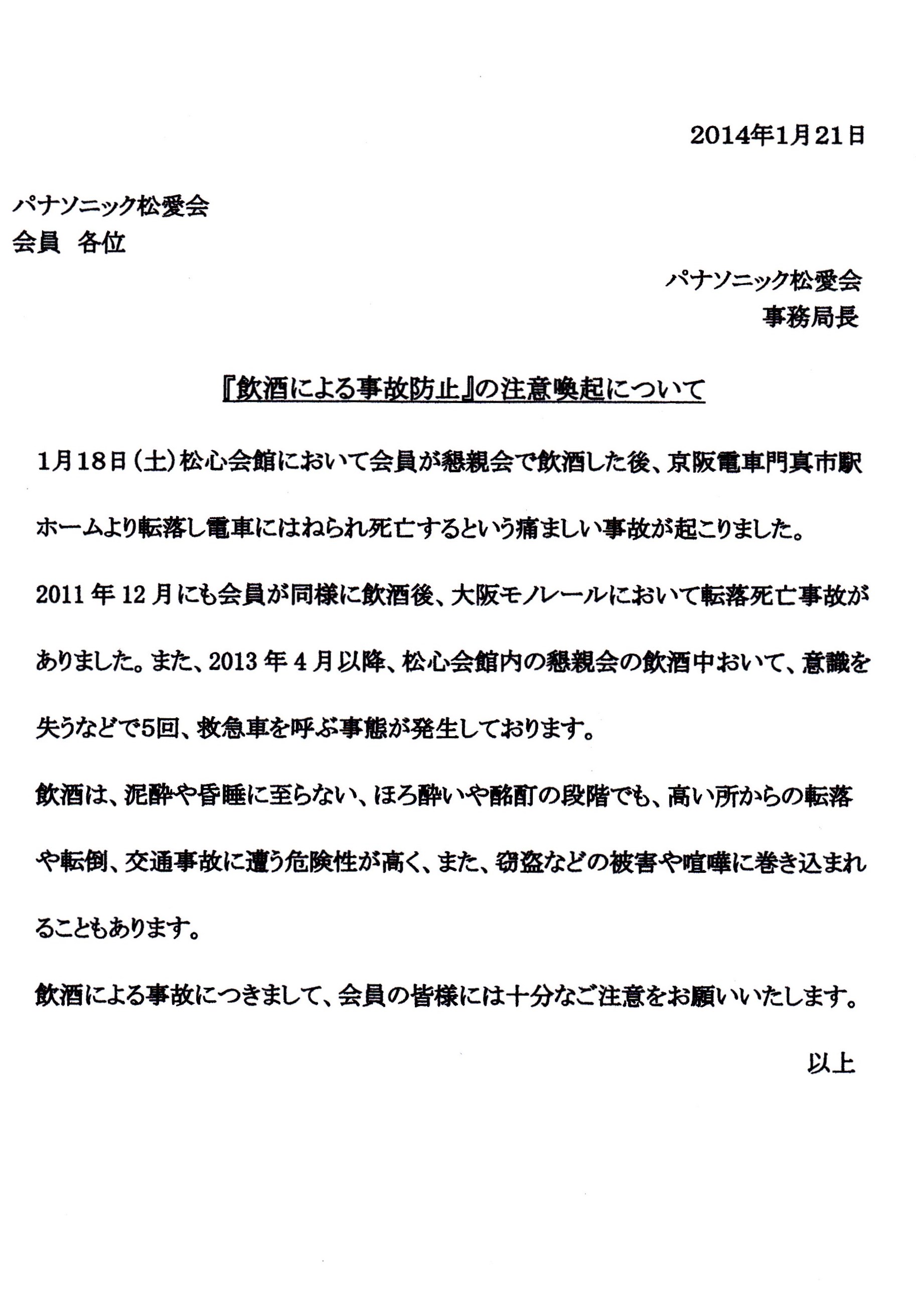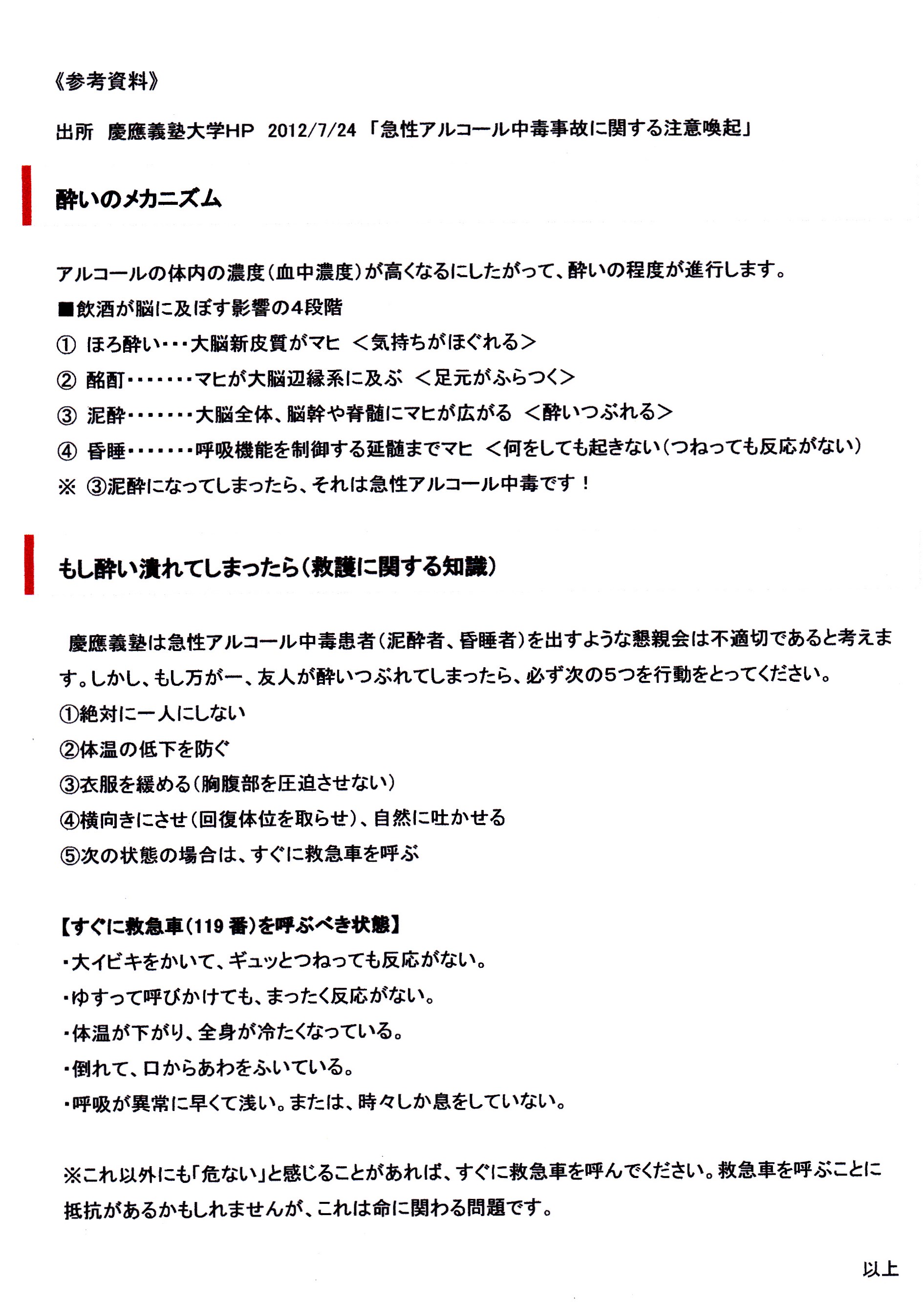 最近、飲酒事故が多発しています。十分ご注意ください。