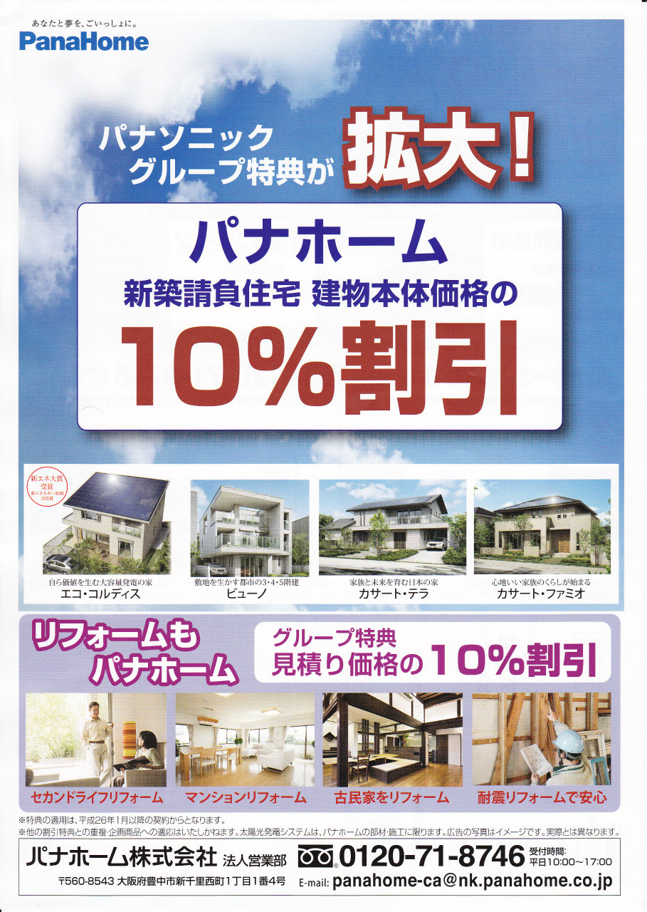 ☆ パナホーム「新築・リフォーム」特典の拡大について