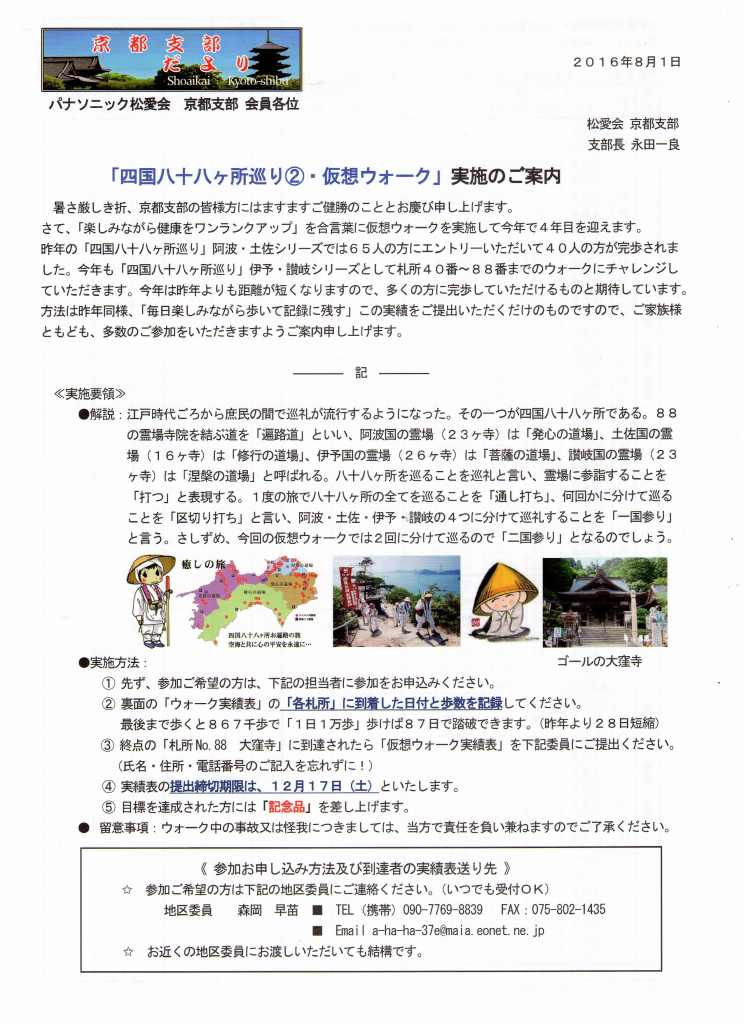 パナソニック松愛会京都支部からのお知らせ