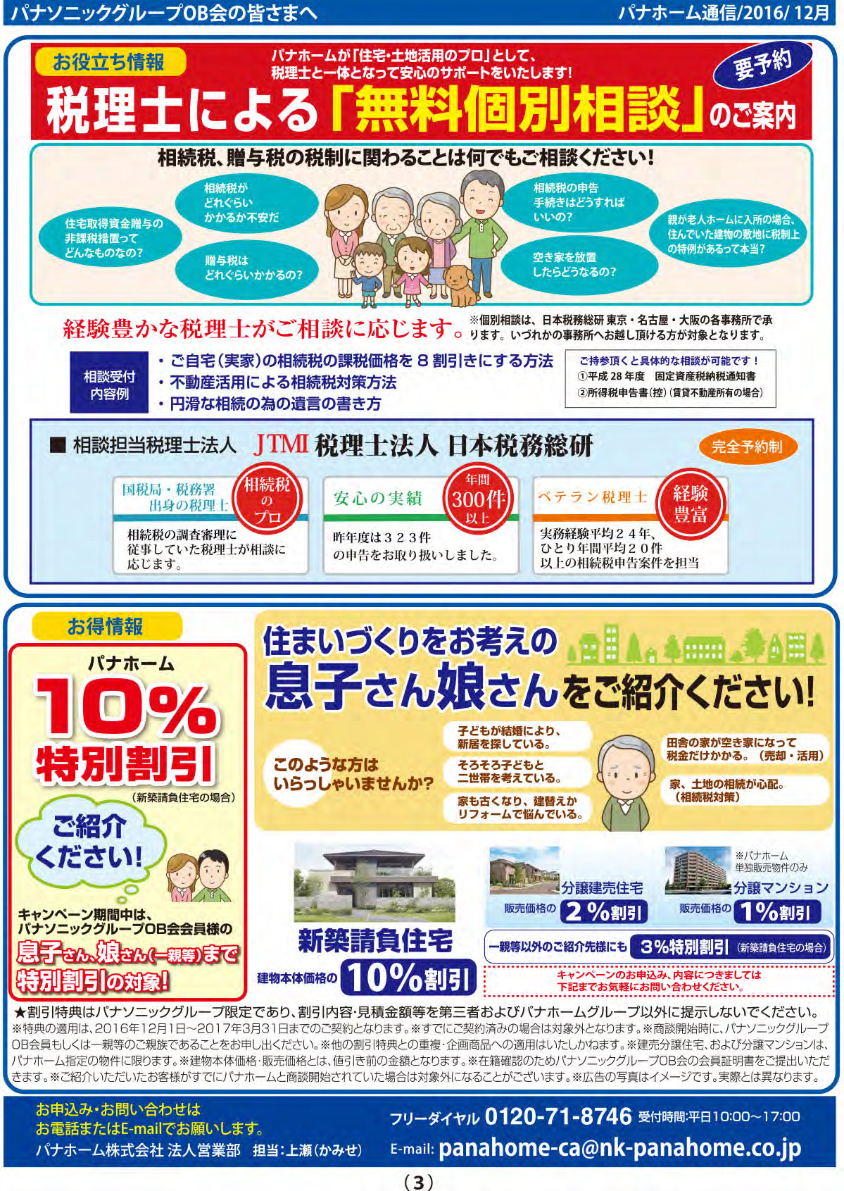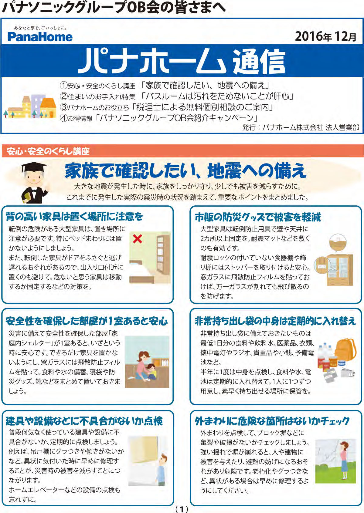パナホーム(株)様から『パナホーム通信 2016年12月号』が送付されてきました