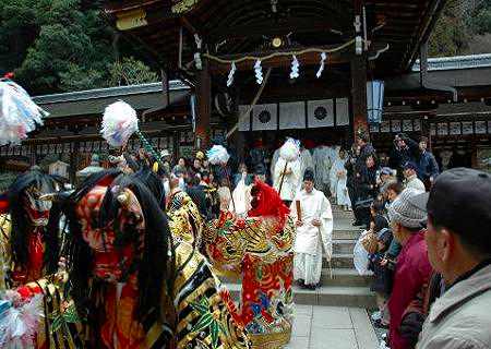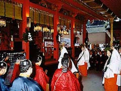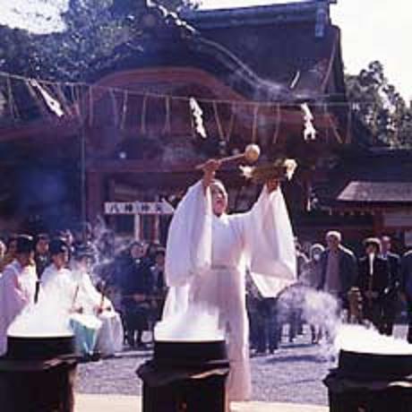 | 2月1日(月)・3日(水) 湯立神事 石清水八幡宮 TEL 075-981-3001 ○春を呼ぶ節分行事で、男山五水の1つ「石清水」からくみ上げた御神水を釜で沸かし 御神前に献上、神楽女が笹の葉で釜の熱湯を激しく振りまき、厄除け・無病息災・五穀豊穣 を祈る伝統行事です。 |