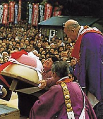 | 2月23日(火) 五大力尊二王会 醍醐寺 TEL 075-571-0002 ○醍醐寺の山上にある五大堂の五菩薩は『五大力さん』と呼ばれ、衆生済度、現世ご利益の 霊験あらたかであるとされています。大法要が行われ、その後、五大力餅と呼ばれる巨大な 餅を持ち上げて力比べをする競技が行なわれます。 (男子は150Kg、女子は90Kgで時間を競う)優勝者に大鏡餅が授与される。 ○当日に限り、災難除け身代わり霊府“五大力さん御影”が授与される。 |