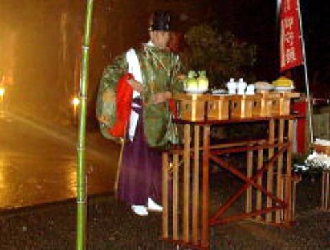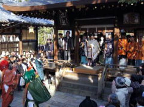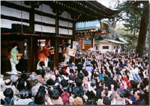 | 2月17日(水) 燃 灯 祭 上賀茂神社 TEL 075-781-0011 ○清楚で味わい深い平安以来の神事で、上賀茂神社の神山の麓で祭官たちが小松を引き、 玉掃草を添えて神前に献上するもので、昔の人々が春を待ちこがれて野原に出て若菜を 摘み、春の到来を尊び宴遊した野辺遊びを神事化したものです。 |