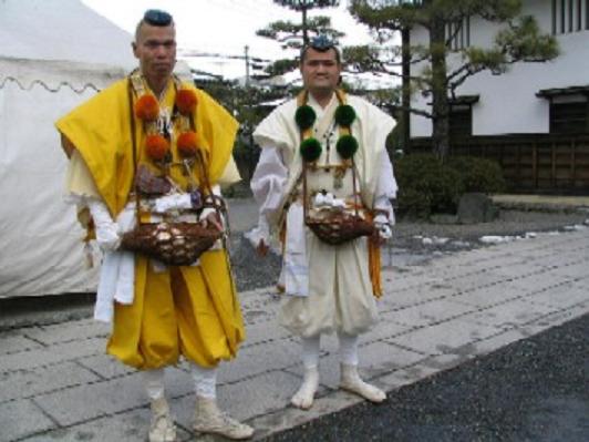 | 《 聖護院節分会 》 聖護院 本尊不動明王(重文)は智証大師作と伝えられ、この2日間に限り一般に公開。古札焼き、甘酒の 接待(予定)もあります。山伏問答など修験道独特の作法も興味深いものです。 追儺式・山伏福豆まきは3日13時〜。厄除け開運採燈大護摩供は15時〜 ●期 間:2月2日(火)、3日(水) ●問合せ:聖 護 院 TEL 075-771-1880 |
