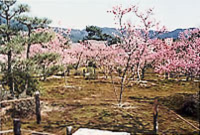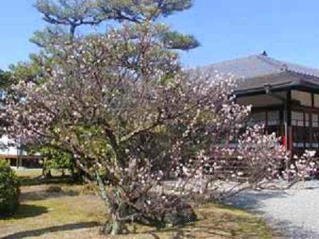 | 《 大 覚 寺 》 白砂が敷き詰められた宸殿の前には 「左近の梅」 が配されています。大沢池の ほとりには、「嵯峨の梅林」が見られます。 ●見ごろ 3月上旬〜3月下旬 ●庭 園 拝観料 500円 【大覚寺】右京区嵯峨大沢町 市バス28「大覚寺」 ●問合せ:大覚寺 TEL 075-871-0071 |