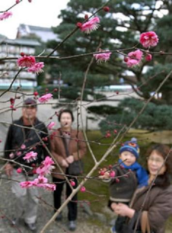 | 《 二 条 城 》 本丸御殿の南西にある梅苑は130本。どちらかというと遅咲き気味。 ●見ごろ 2月中旬〜3月下旬 ●料 金 梅苑:無料(入城料 600円必要) 【元離宮二条城】 中京区二条通堀川西入二条城町 地下鉄東西線「二条城前」 市バス9・50「二条城前」 ●問合せ:元離宮二条城事務所 TEL 075-841-0096 |