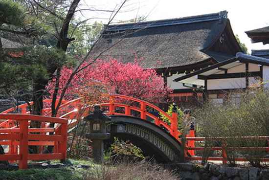 | 《 下 鴨 神 社 》 御手洗川に架かる輪橋と紅梅の「光琳の梅」が雅な風景をつくります。江戸時代の画家、 尾形光琳が国宝「紅白梅図屏風」を描いたのがこのあたりといわれています。 ●見ごろ 2月上旬〜3月下旬 ●庭 園 境内自由 【下鴨神社】左京区下鴨泉川町 市バス205「下鴨神社前」 ●問合せ:下鴨神社 TEL 075-781-0010 |