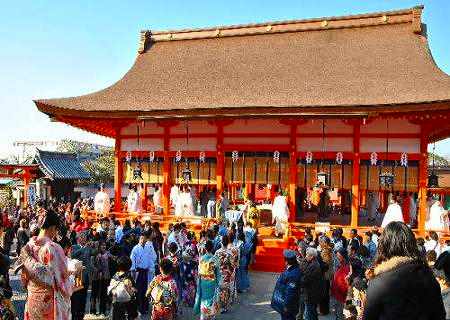 | 2月6日(土) 初午大祭(はつうまたいさい) 伏見稲荷大社 TEL 075-641-7331 ○和銅4年(711年)に祭神が降臨された事にちなむ行事で【福参り】、【福稲詣で】と呼ばれ、 大変な賑わいとなります。又、平安の昔は京洛初春第一の祭りでもありました。 |